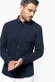 68% algodão / 32% poliéster. Malha jacquard. Base do colarinho de camurça em contraste. Look moderno. Material confortável e suave. Carcela clássica com botões imitação de pérola. Punhos reguláveis com botões imitação de pérola. Bainha arredondada. Gramagem 165 Dimensão