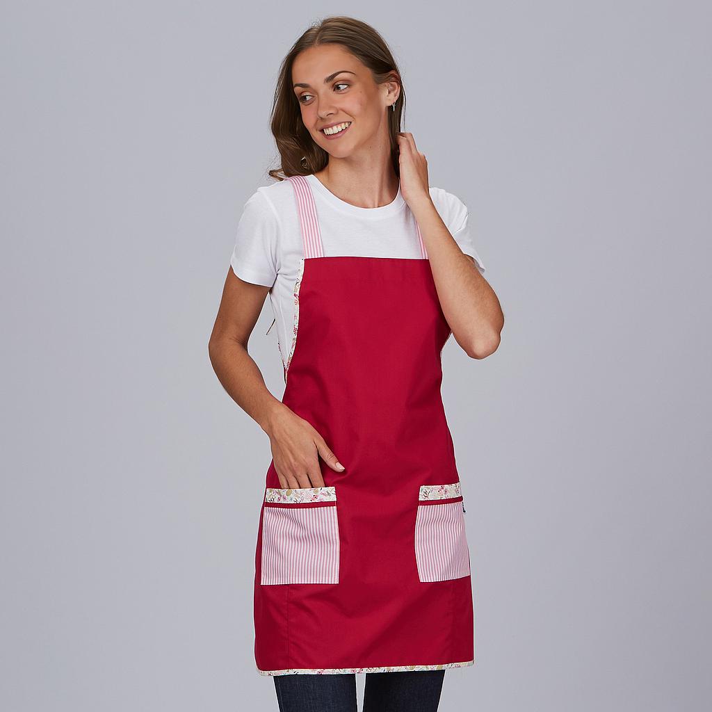 O Avental Educadora Zinia é a escolha ideal para profissionais que procuram aliar funcionalidade, conforto e estilo ao vestuário de trabalho. Inspirada no corte jardineira, apresenta um design semi-justo (M2) com pinças estrategicamente posicionadas no peito e nas costas, garantindo um ajuste elegante e uma silhueta favorecedora. O seu visual distintivo é realçado pelas alças largas em vichy rosa, que acrescentam cor e personalidade, e pelas cavas rematadas com viés estampado Aquarium – detalhes que trazem uma frescura única à peça.