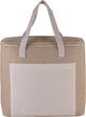 Saco isotérmico com exterior em juta e bolso em algodão para facilitar a personalização. interior isotérmico com revestimento isolante em alumínio e espuma isotérmica de alta densidade. Pegas em algodão. Modelo médio. Gramagem Dimensão 28 x 25 x 17 cm