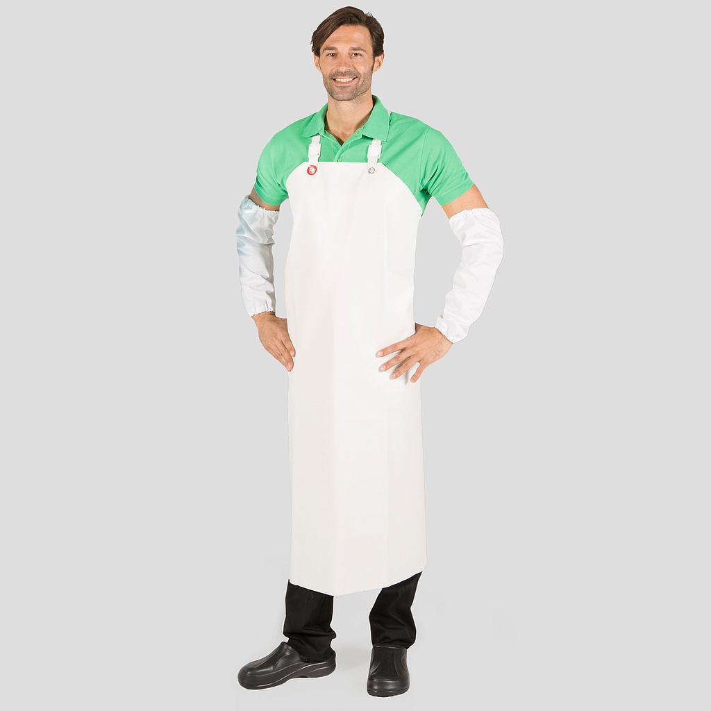 Avental de babador em NITRILO, sem bolsos e com arnês regulável. Maior durabilidade e flexibilidade com acabamento à prova d'água. Devido a sua alta resistência a gorduras animais, sangue e altas temperaturas, é ideal para uso na indústria alimentícia.