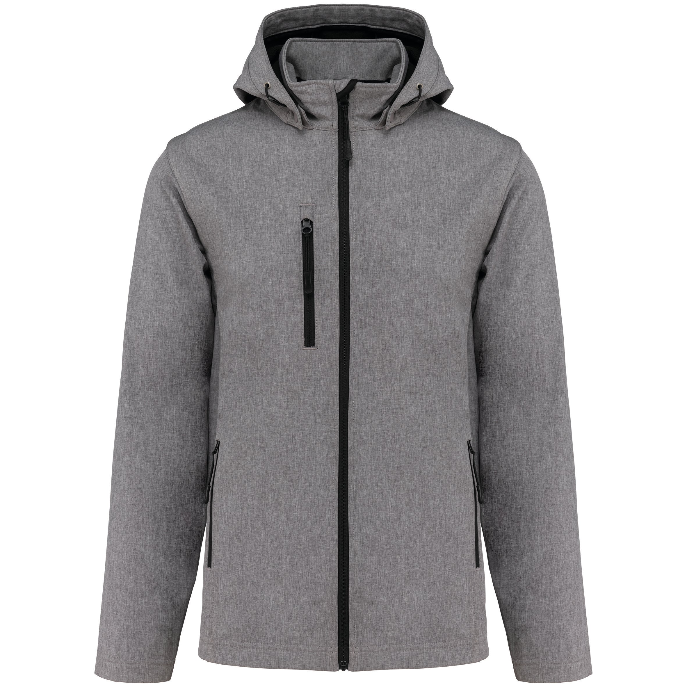 95% poliéster/5% elastano. Tecido termocolado com 3 camadas respirável. 3000 g/m²/24 horas e impermeável 8000 mm. Exterior: 95% poliéster/5% elastano. Camada intermédia: membrana respirável. Camada interior: micropolar. Tecido que facilita a impressão. Corte justo. Com fecho. 2 bolsos frontais com fecho e um bolso com fecho no lado direito. Capuz amovível graças a molas e cordão de ajuste. Mangas amovíveis com fecho. Acabamento costura dupla nas mangas e no cós.