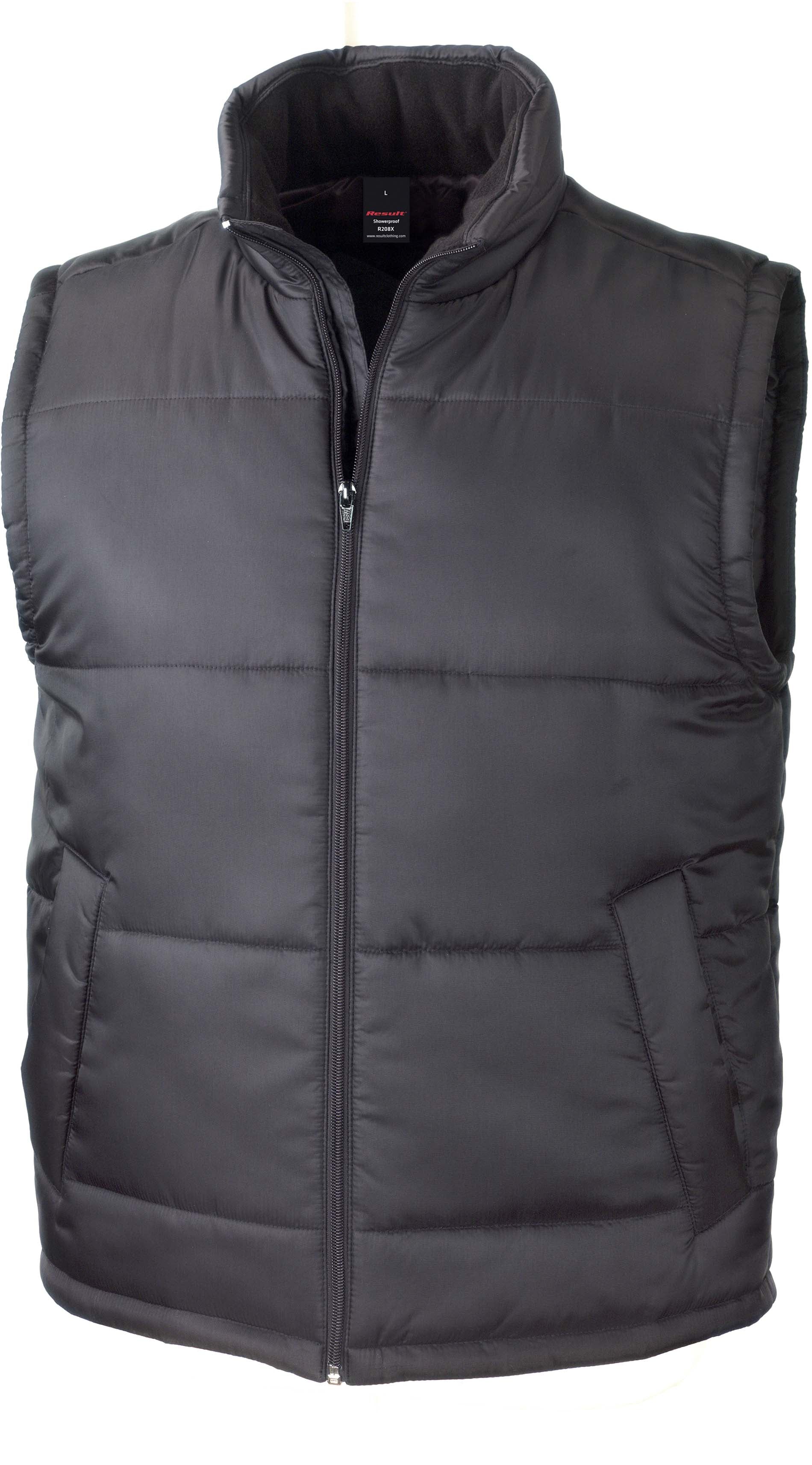 Exterior 100% poliéster. Enchimento 100% poliéster. Secagem rápida. leve. corta-vento e resistente à água. Ideal para sobrepor com um polar. Fecho com pala de protecção interior. Cavas pronunciadas para maior conforto. 2 bolsos + 1 bolso interior. Abertura com fecho na costura lateral esquerda para personalização. Gramagem Dimensão