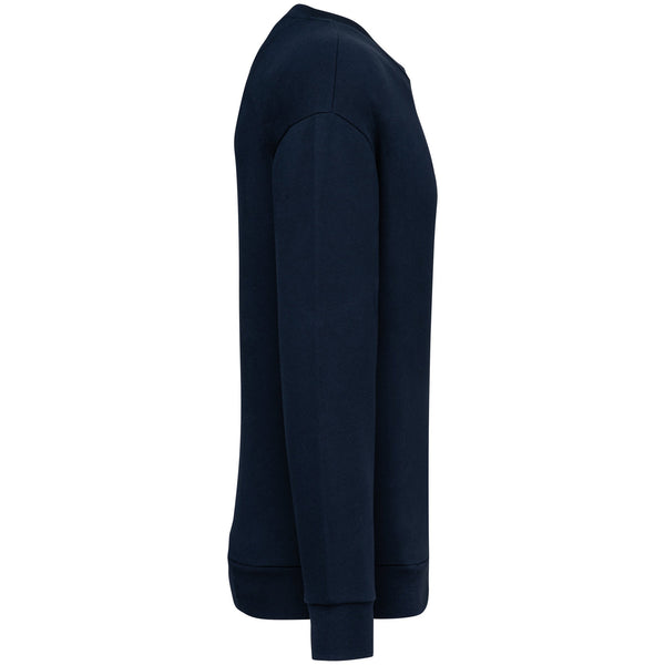 Algodão penteado. Corte direito com ombros descaídos. Interior 3 fios cardado. Meia-lua nas costas. Com banho de enzimas. Decote, punhos e cós em malha rib 1 x 1, montagem tubular para melhor acabamento