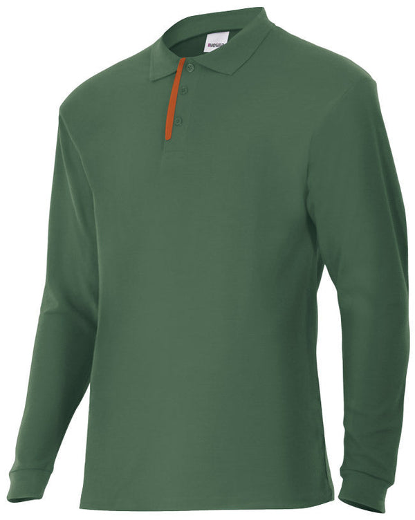 Polo de manga comprida fabricado em malha transpirável. Gola canelada e carcela com botões. Bolso solto sem costurar Piqué. 60% algodão - 40% poliéster Gramagem 180 gr/m2 Dimensão