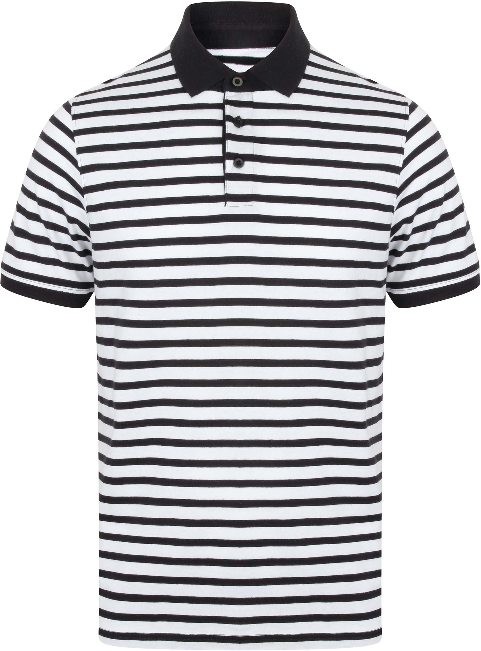 100% algodão jersey. Colarinho e acabamento da manga em malha com elastano. Base do colarinho e carcela em jersey. Carcela com 3 botões em cor Navy. Aberturas laterais com efeito Chevron. Acabamento da bainha com costura dupla. Sem etiqueta para uma personalização mais fácil. Gramagem 180 Dimensão