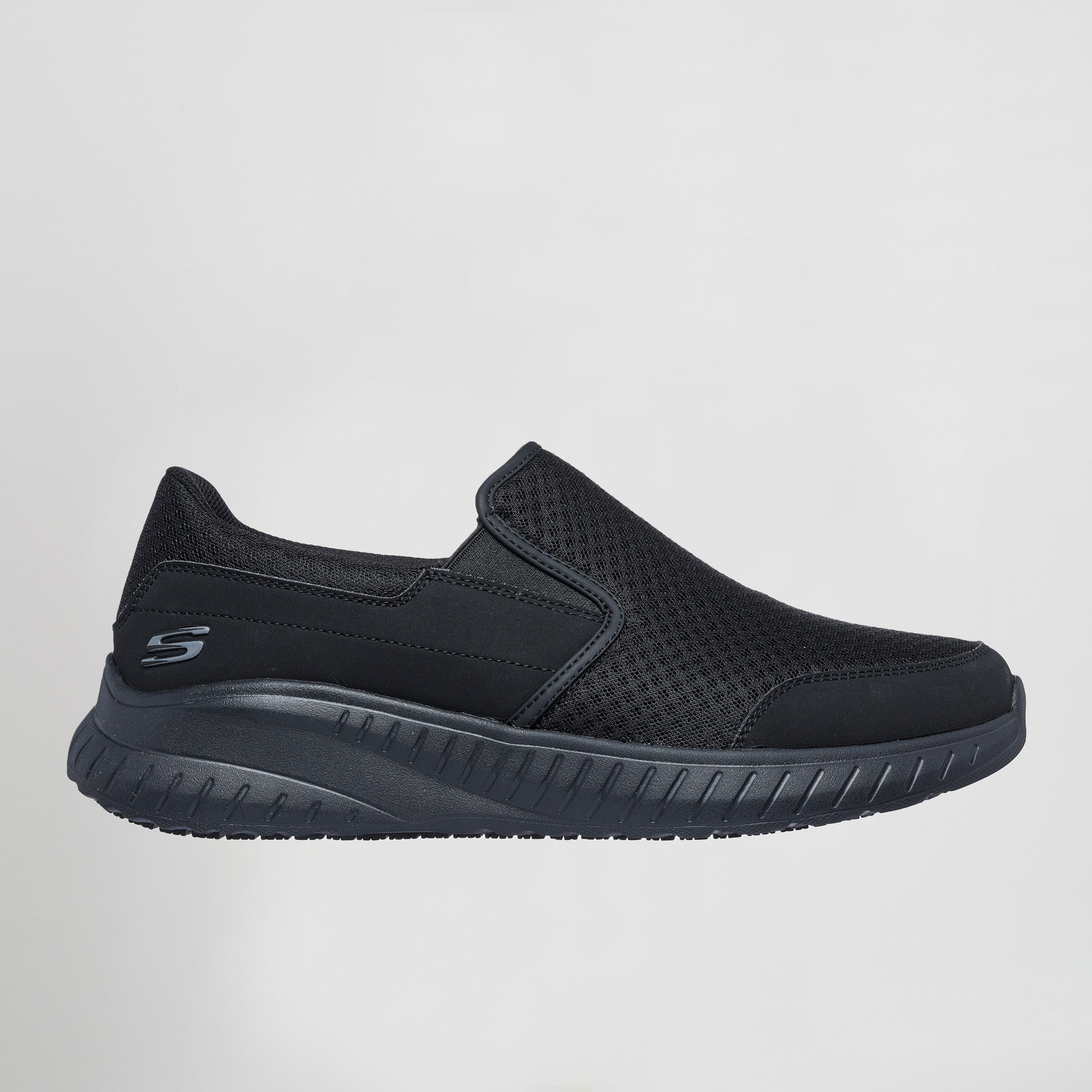 A Skechers aposta numa parte superior em malha sintética resistente à água, protegida adicionalmente pela tecnologia Scotchgard®, que repele líquidos e facilita a limpeza. O interior conta com a palmilha ultra confortável Skechers Air-Cooled Memory Foam®, proporcionando suporte e amortecimento, ideal para profissionais que passam muitas horas de pé ou em movimento. O design Relaxed Fit® oferece mais espaço na zona frontal, garantindo ajuste confortável mesmo após um longo dia.