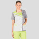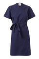 Bata curta unissexo com mangas curtas, aberto, com gola redonda, um bolso no peito esquerdo e dois bolsos frontais. Peça folgada com aberturas laterais. Modelo básico em tecido ás riscas azuis ou verdes claras. Ideal para limpeza, alimentação ou uniforme comercial.