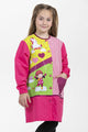 Schürze für Erzieher in einem grünen Quadrat mit aufgedrucktem Tiermotiv auf der grünen Vorderseite. Kontrastierende blaue Hosenträger. Hinten mit orangefarbenen Bändern verstellbar. Größe: EINS. Länge: 82 cm