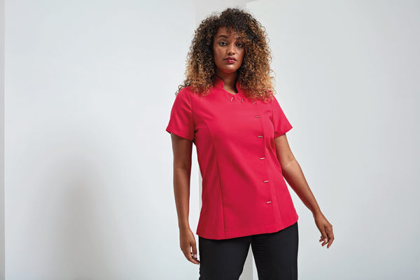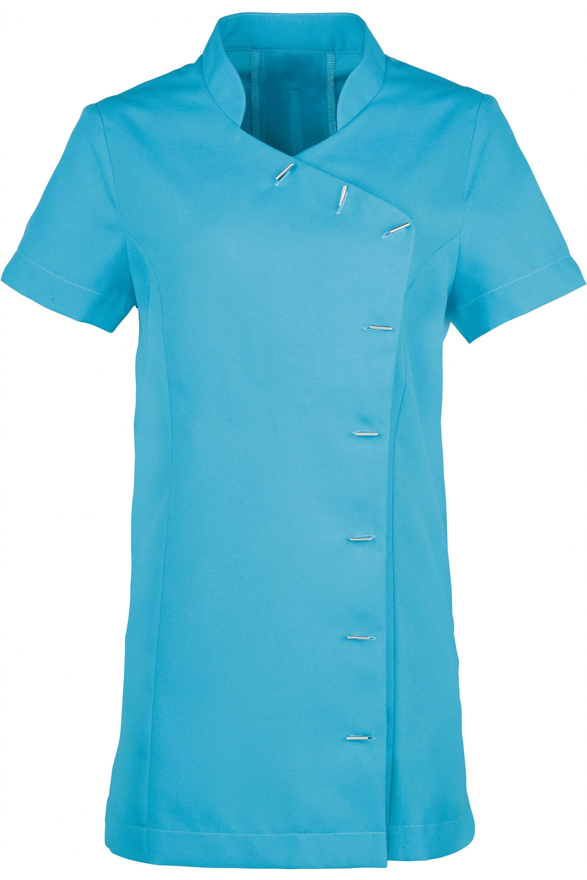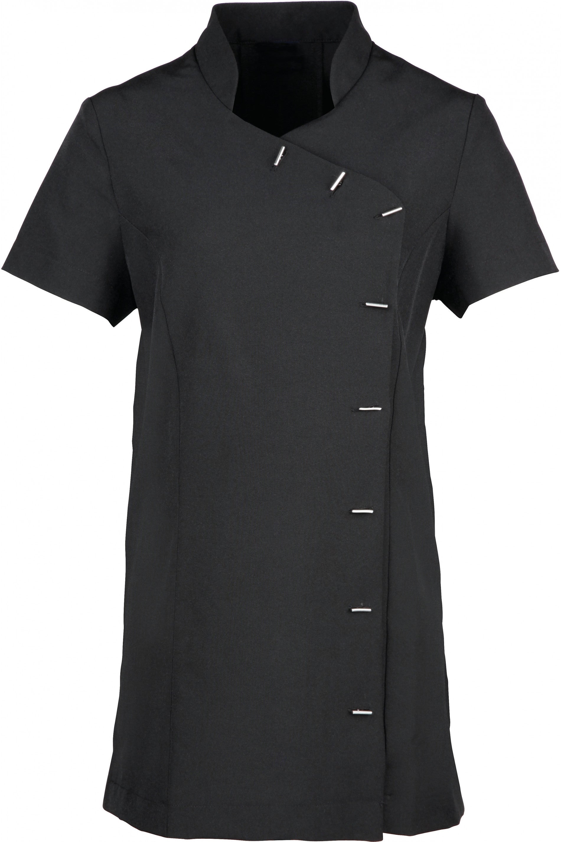 100 % Polyester mit Stretcheffekt. Tunika für Beauty oder Spa mit Mao-Kragen. Kurzarm. Asymmetrisches Knopfsystem auf der Vorderseite mit rechteckigen Metallknöpfen. Seitliche Öffnungen. Klemme auf der Rückseite für mehr Komfort. Zarte Nähte. Einfache Behandlung. Waschbar bei 40°C. Grammatur 185