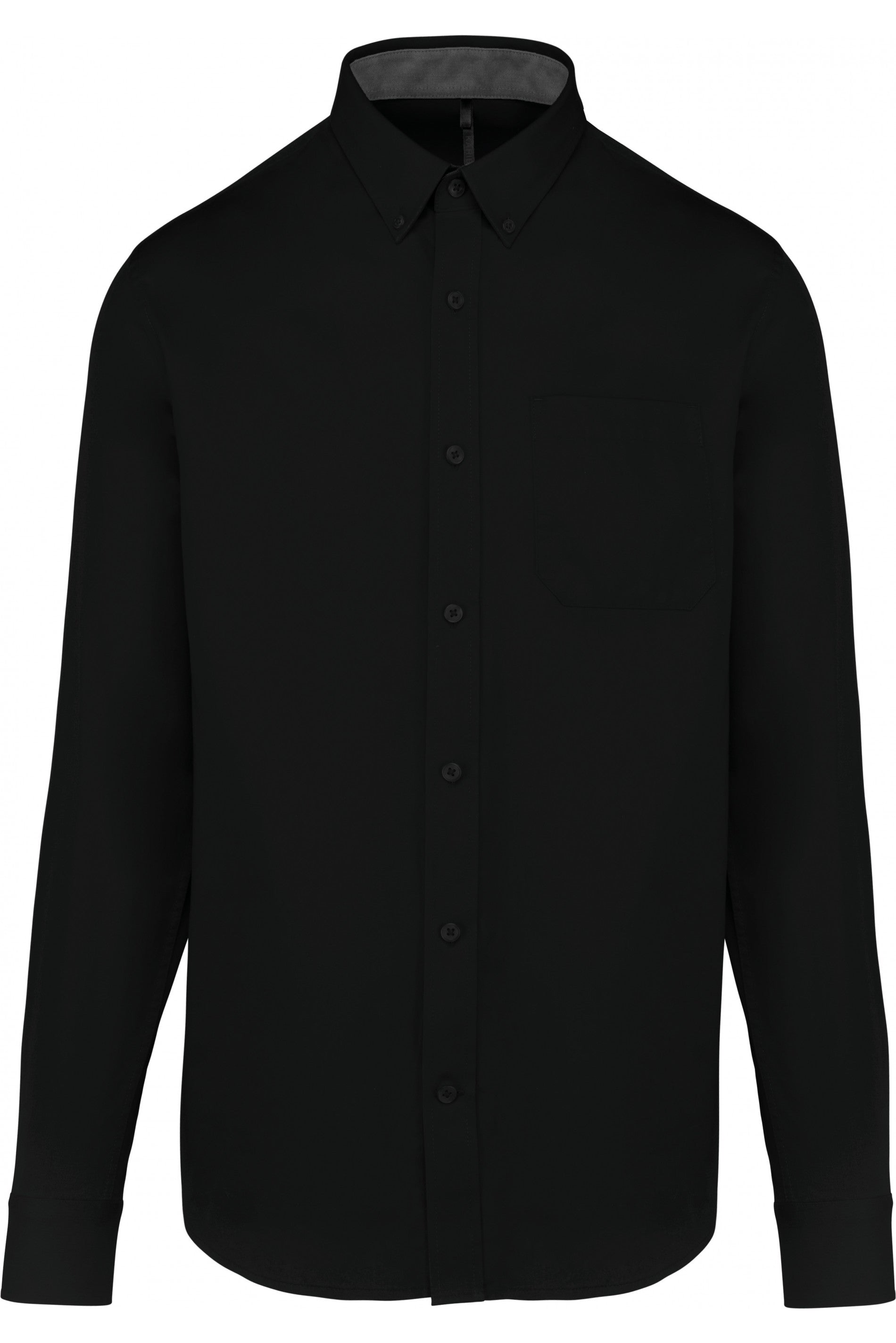 100 % Baumwolle. Twill-Stoff mit Pfirsichhaut-Touch. Kragen mit Knopf. Farbtasten. Brusttasche links. Kontrastierende Innenseite des Kragens und der Manschetten in Oxford-Silber. 2 Falten auf der Rückseite mit Clip. Verstellbare Manschette mit Knöpfen. Zusätzlicher Knopf. Gewicht 155 Abmessungen