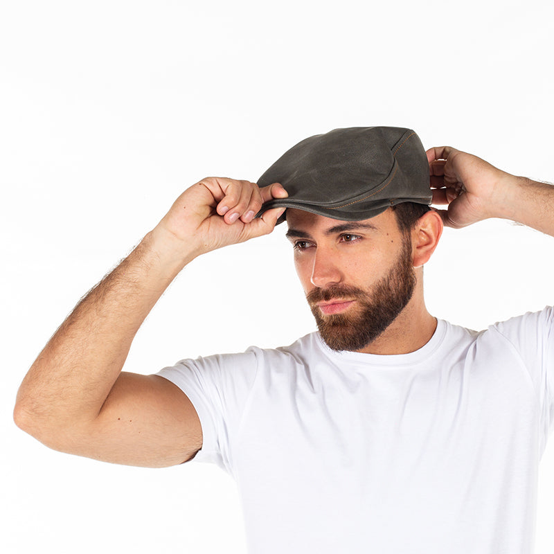 UNISEX-LEDERHUT, mit starrem und elastischem Visier, das zur Anpassung hinten versteckt ist. Einheitsgröße, hergestellt aus Kunstleder und in den Farben Braun oder Marengograu erhältlich. Ideal als Ergänzung zur Mitarbeiteruniform in Bars, Restaurants oder im Handel allgemein.