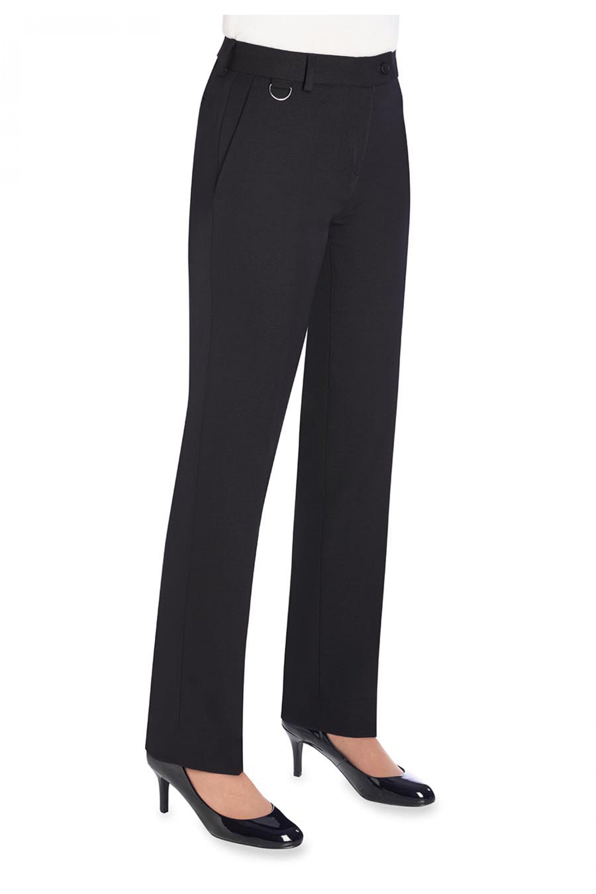 Gerade Hose. Clips und Schlüsselringe. 2 Vordertaschen. 2 falsche Gesäßtaschen. (Lieferung mit „unfertigem Saum“ – Länge: 91,5 cm).