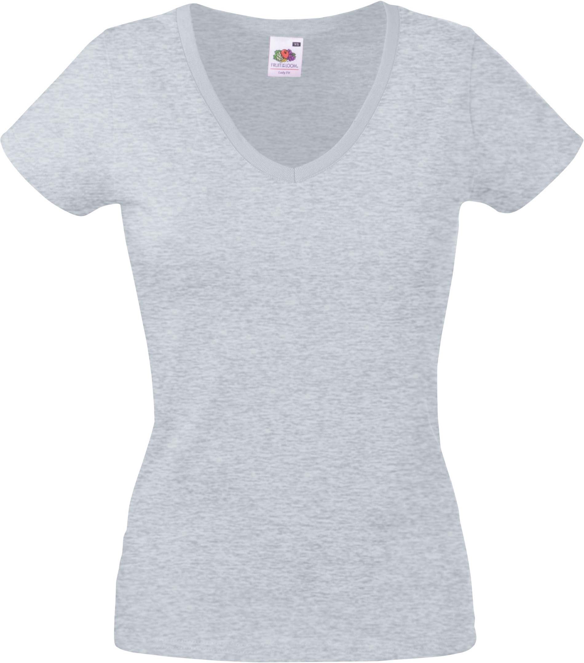 100 % Baumwolle (außer Heather Grey: 97 % Baumwolle/3 % Polyester und Dark Heather Grey: 50 % Baumwolle/50 % Polyester). Feminin taillierter Schnitt mit taillierter Körperlänge. V-Ausschnitt. Gewicht 160-165 Maße