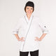 Unisex-Jacke mit langen Ärmeln, Priesterkragen, Tasche am linken Ärmel und zweireihigem Verschluss mit verdeckten Druckknöpfen. Halb tailliertes Modell mit elastischen Rippen an den Bündchen und Armlöchern am Rücken. Hergestellt aus weißem SARGA, kombiniert im Kontrast mit Schwarz. Ideal für Köche und Kochuniformen in Hotels, Restaurants und Küchen im Allgemeinen.