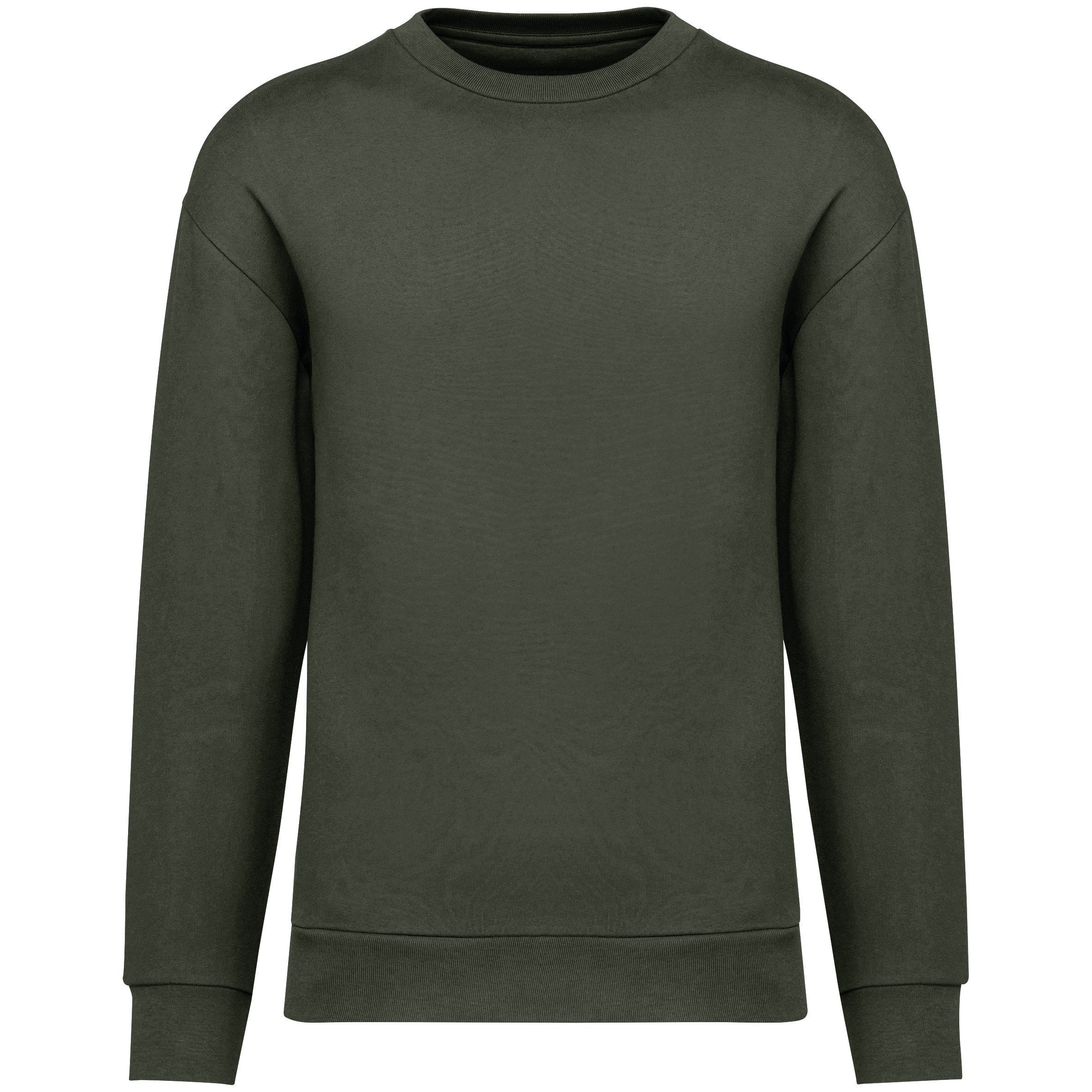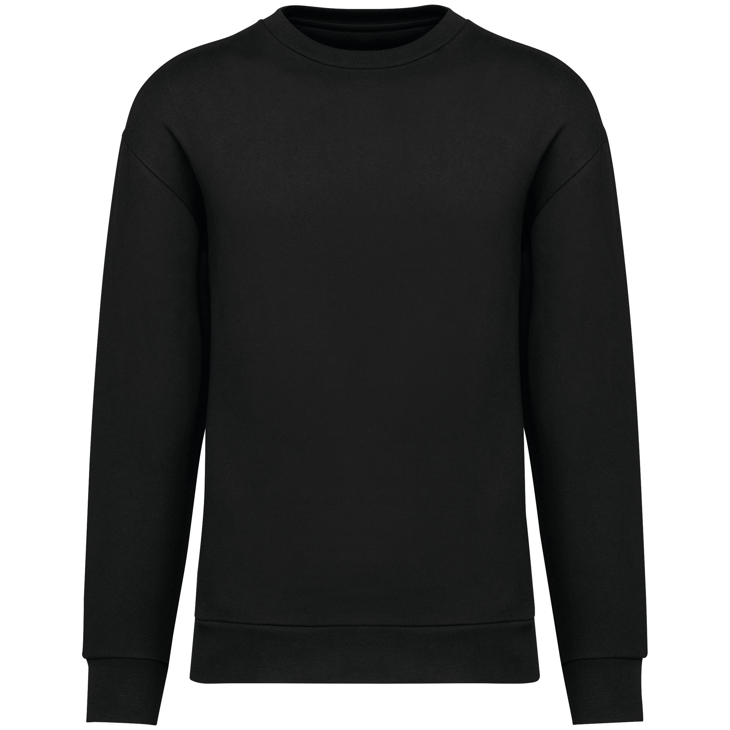 Algodão penteado. Corte direito com ombros descaídos. Interior 3 fios cardado. Meia-lua nas costas. Com banho de enzimas. Decote, punhos e cós em malha rib 1 x 1, montagem tubular para melhor acabamento