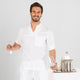 Damenhemd mit Mao-Kragen, hergestellt aus FALSCHER LEINEN 50 % Baumwolle – 50 % Polyester (110 g/m²). Es hat lange Ärmel mit verstellbaren Knopfverschlüssen, Knopfmanschetten, Abnäher an den Seiten und am Rücken, Seitenschlitze und einen Kragenverschluss mit drei sichtbaren Knöpfen. Ideal für Uniformen in Hotellerie und Gastronomie, Empfang, Büro oder Einzelhandel.