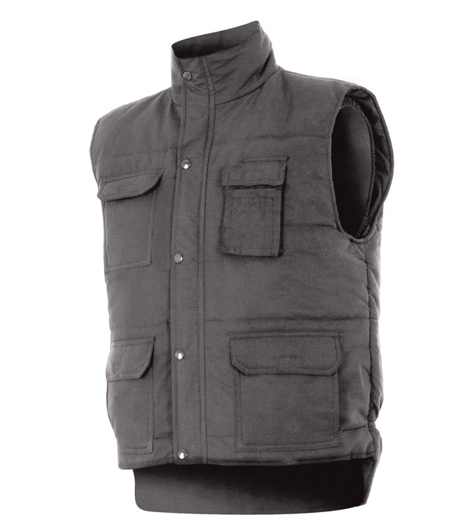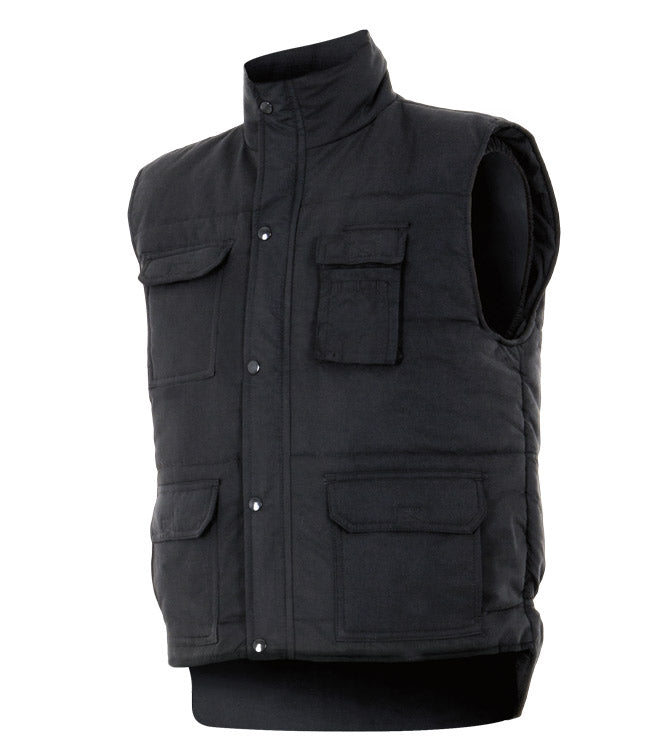 Zentraler Reißverschluss, verdeckt mit Patte.Zentrale Patte mit automatischen Knöpfen.Seitlicher elastischer Bund.Armloch-Windschutz.Sieben Taschen:.1 aufgesetzte Tasche auf der Brust, mit Patte und Klettverschluss.2 untere aufgesetzte Taschen, mit Patte und Klettverschluss. Darunter jeweils 2 Seitentaschen. 1 Blasebalgtasche auf der Brust, mit Patte und Klettverschluss. Darüber Unterteilungen für Stifte.1 b... Außengewicht: 120 g/m2. Innen: Futter 60 g/m2 – Guata 220 g/m2