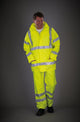 Weather protection. Elastic cuffs. Reflective tape. 100% polyester. Soft-touch, breathable outer fabric with mesh lining. Heat-sealed 3M reflective tape around body, arms and shoulders. Elastic cuffs. Two pockets at the bottom. Drawstring at hem. Seams sewn and sealed with tape. Conforms to EN ISO20471:2013 Class 3 and EN343 Class 3.3 standards.