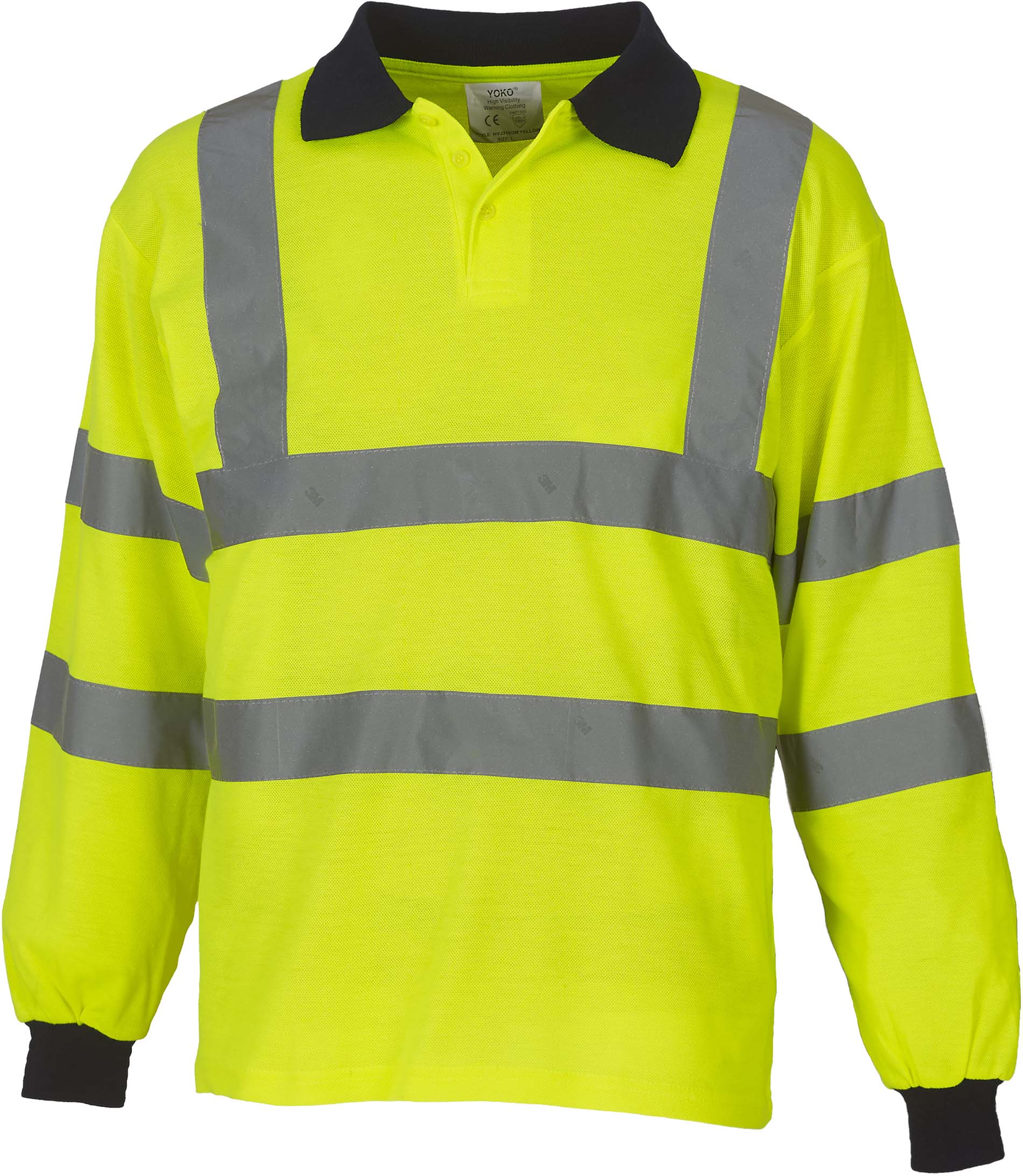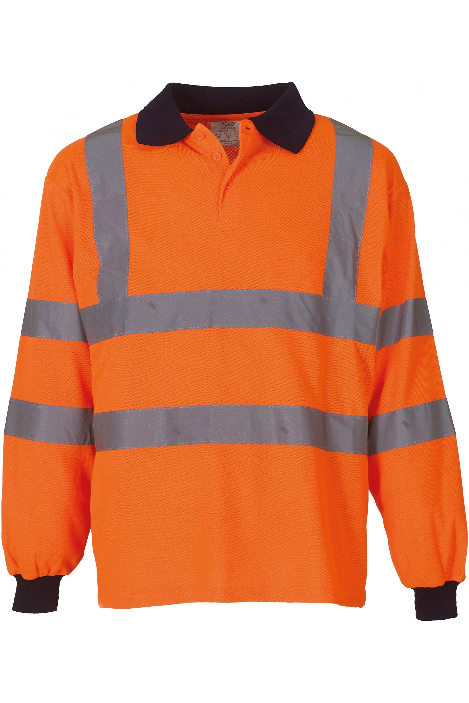100% polyester. Two 5cm 3M reflective strips on the body and shoulders. Contrasting navy rib knit collar and cuffs. Three-button placket. Double-stitched finish. Hi Vis Orange and Hi Vis Yellow conform to EN ISO20471: 2013 Class 3. Hi Vis Orange also conforms to the British railway standard GO/RT 3279.