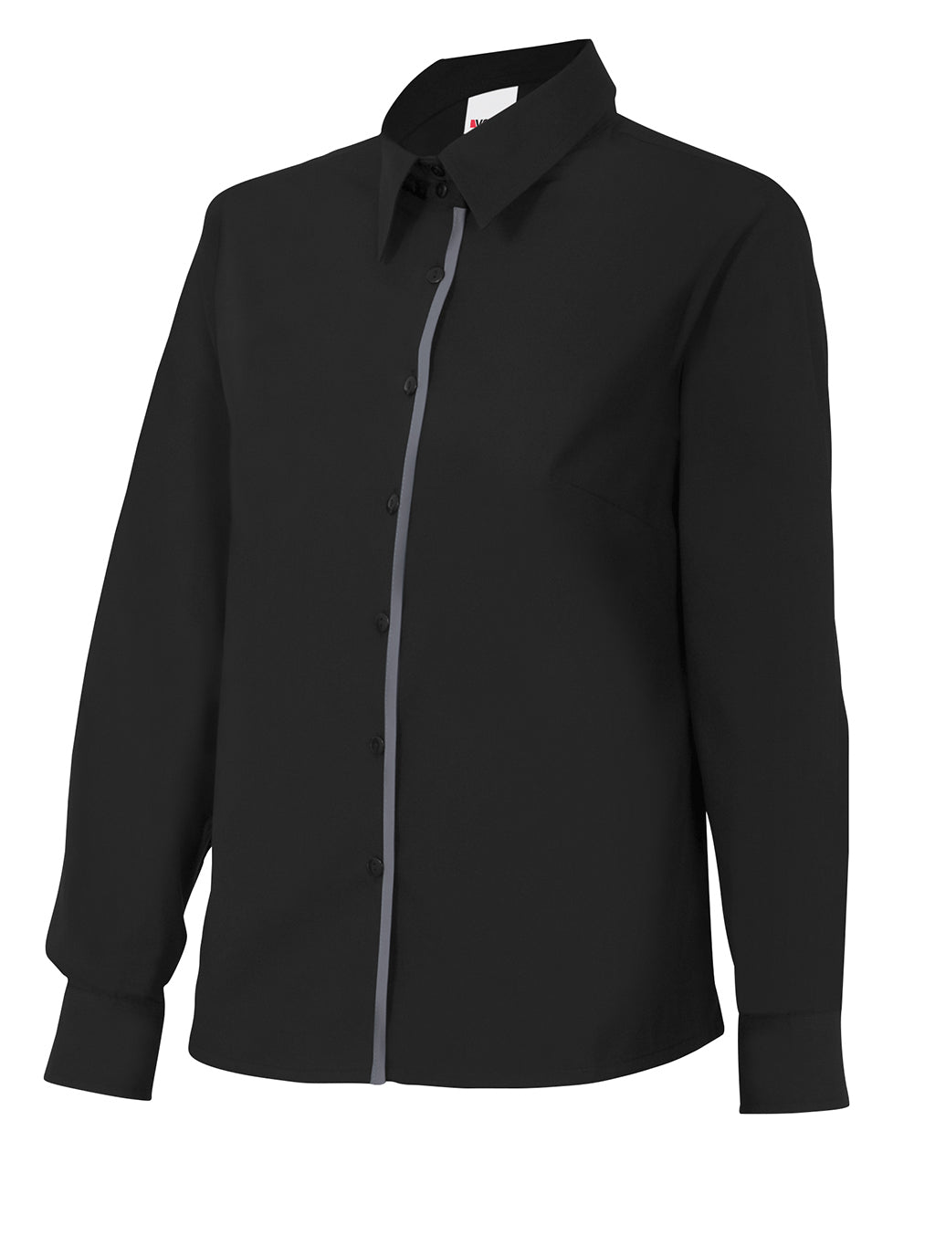 Women's long-sleeved semi-belted shirt with cuffs and buttons. Central closure with buttons and chest clips. Poplin. 65% polyester - 35% cotton Weight 114 gr/m2 Dimension