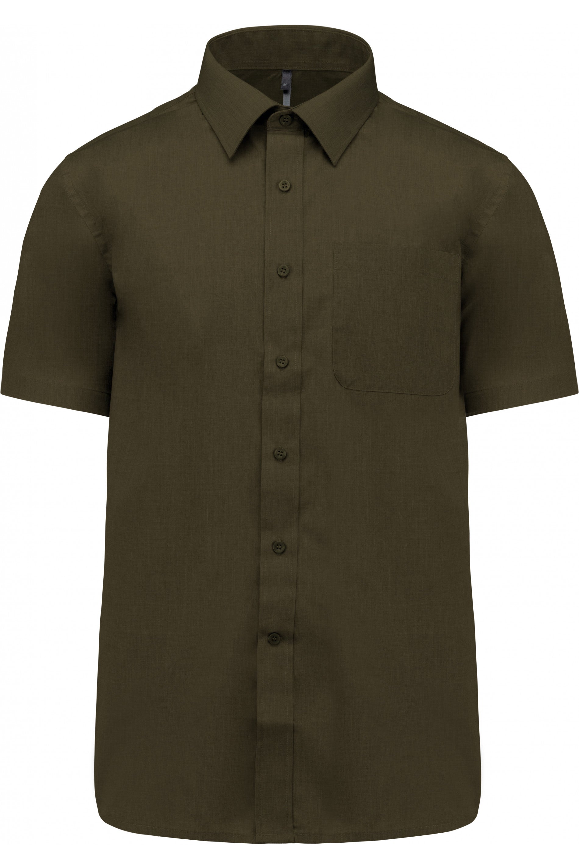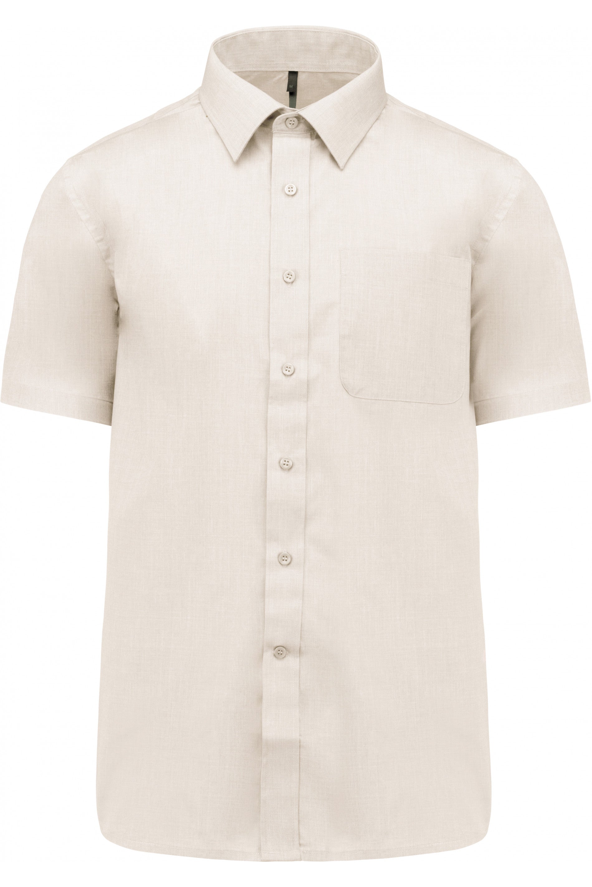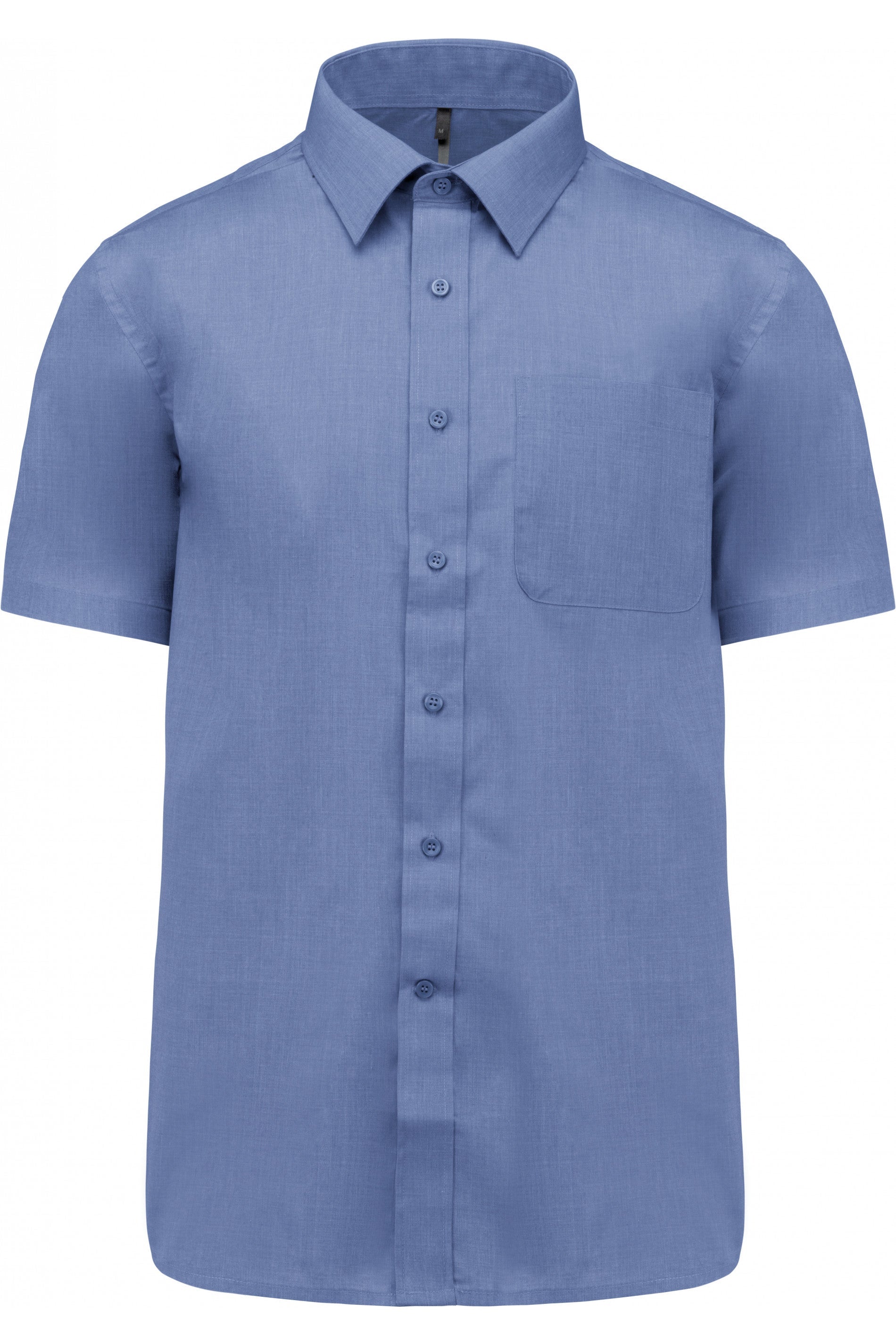 • 65% Polyester / 35% Cotton poplin. Easy-care fabric. Buttonless collar. Matching buttons. Left chest pocket with rounded corners. Double back yoke. Extra button. Rounded hem.