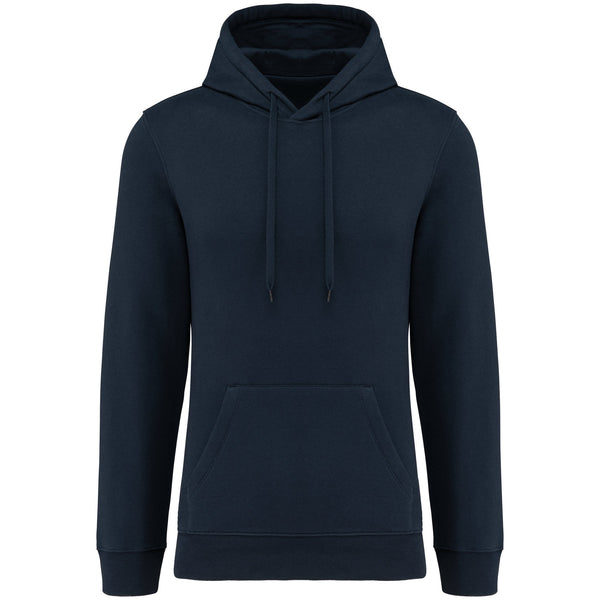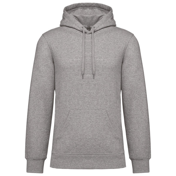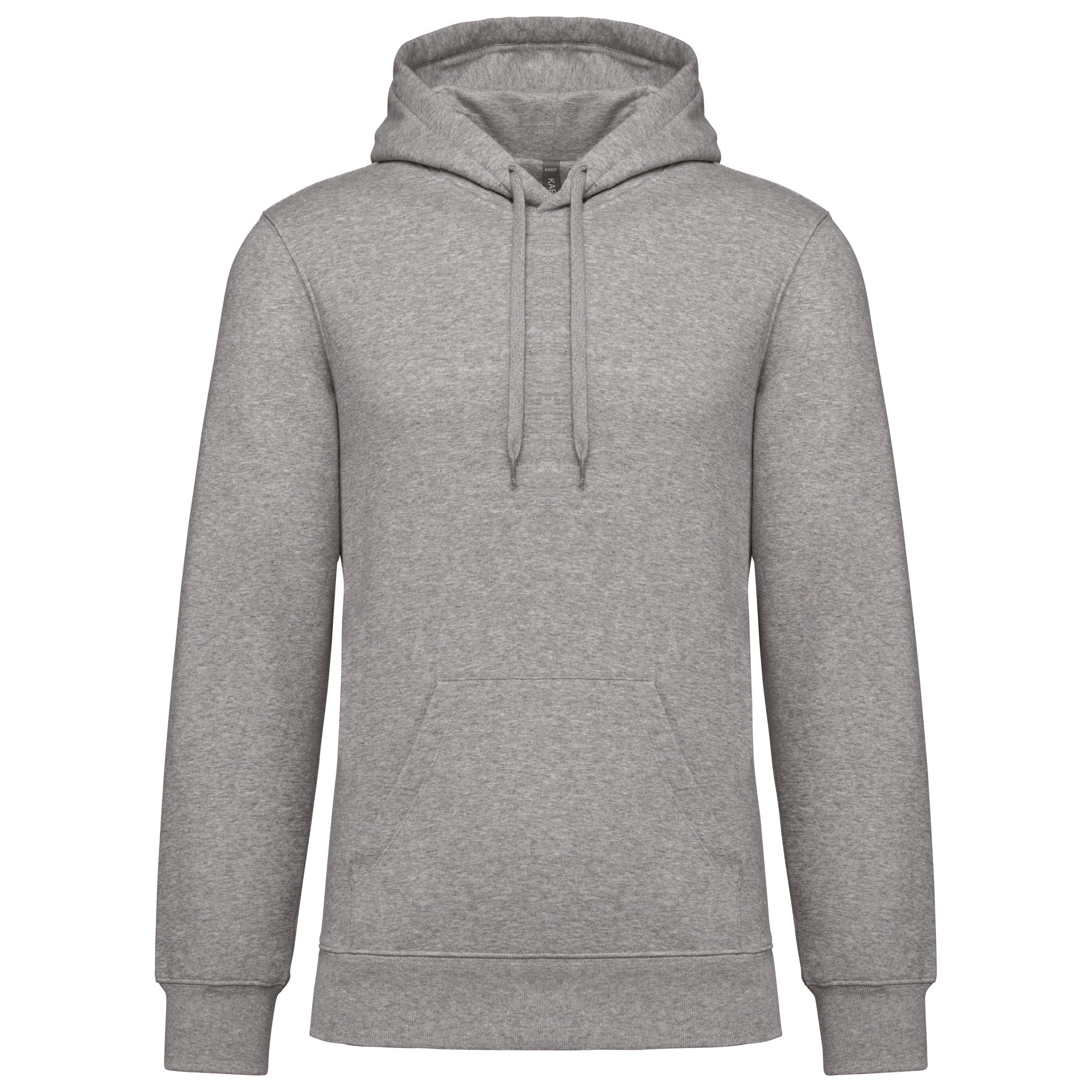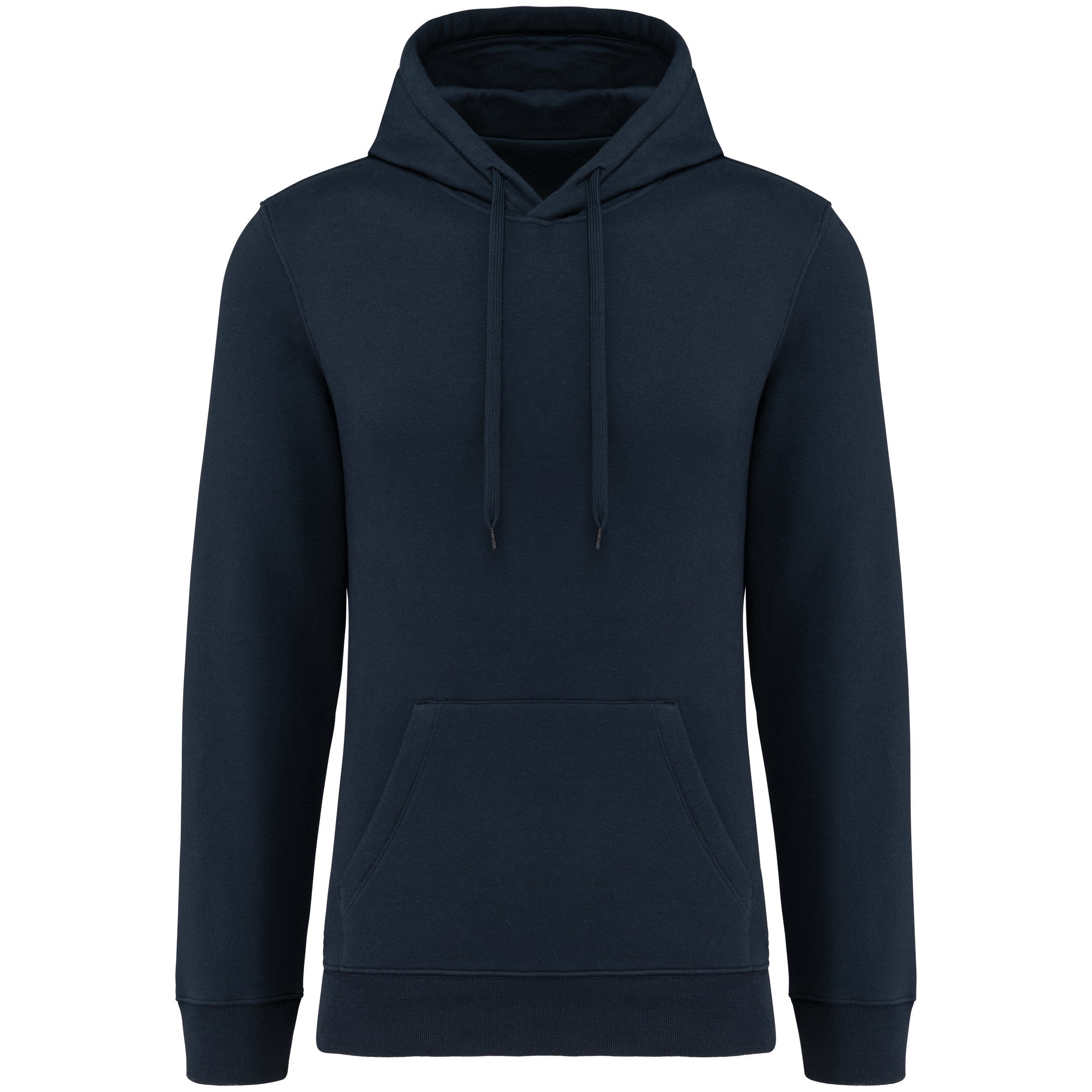 80% cotton/20% polyester. 3-ply LSF (Low Shrinkage Fleece) interior with anti-pilling treatment. Made in Portugal. Straight cut. Round neck. Cut and sew construction. 1 x 1 rib knit tubular construction for better finishing of cuffs and hem. Kangaroo pocket. 100% cotton jersey lined hood with flat drawstring and button eyelets. Half-moon finish on the inside of the neckline. Double stitching on cuffs and hem. No brand label, only size indication to facilitate customization.