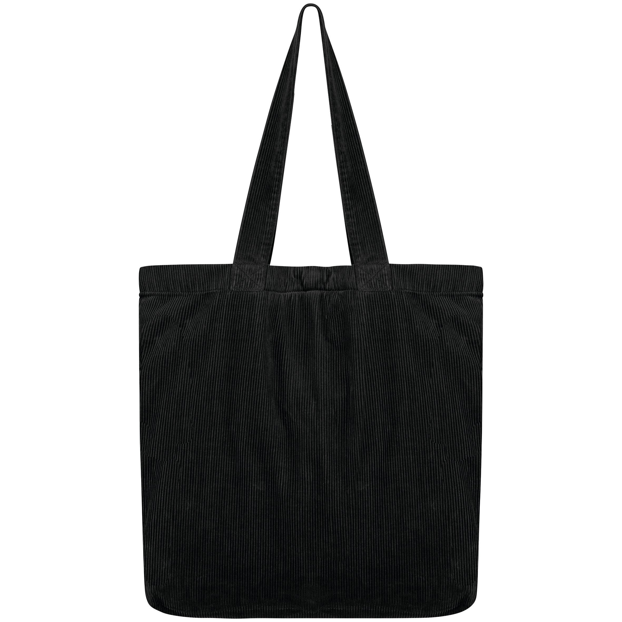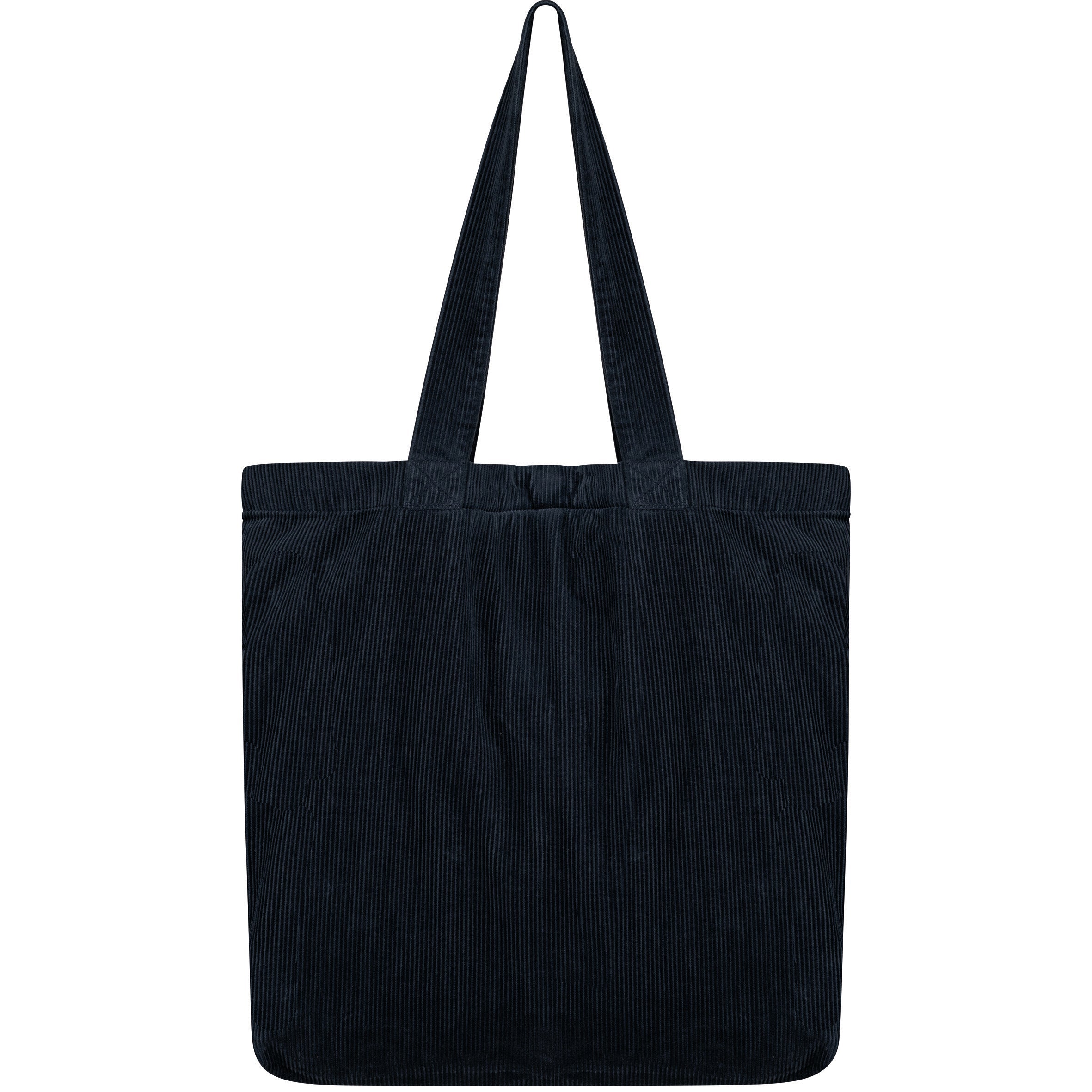 100% organic cotton. Capacity: 25 l. 1 x 1 ribbed velvet bag. Magnetic pressure spring. Interior pocket with recycled metal zipper. Product dyed after assembly: colors may vary slightly from piece to piece. This product is susceptible to fading in contact with light-colored surfaces or clothing.