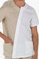 Long sleeve medical tunic. Mao's neck. Washer closure. Clip adornment on display. With 4 pockets, 1 upper and 3 lower. White...