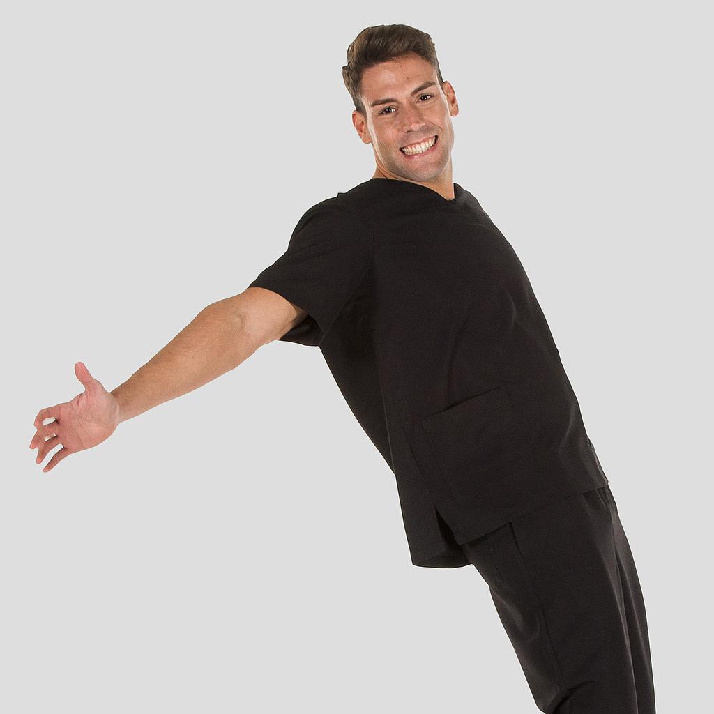 Unisex short-sleeved tunic with a modern and functional design, ideal for professionals who value comfort and practicality. Easy-care antibacterial microfiber fabric with bleach tolerance. The semi-fitted model with V-neckline and side slits provides excellent freedom of movement during work.