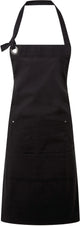 Chest apron. Feminine design and one size fits all. Double lower side pocket with reinforced rivets. Side strap to hold a cloth and interior strap to hang the apron. Adjustable back with crossed herringbone ribbon on the back and metallic eyelets. Side opening Length 68 cm x width 75 cm.