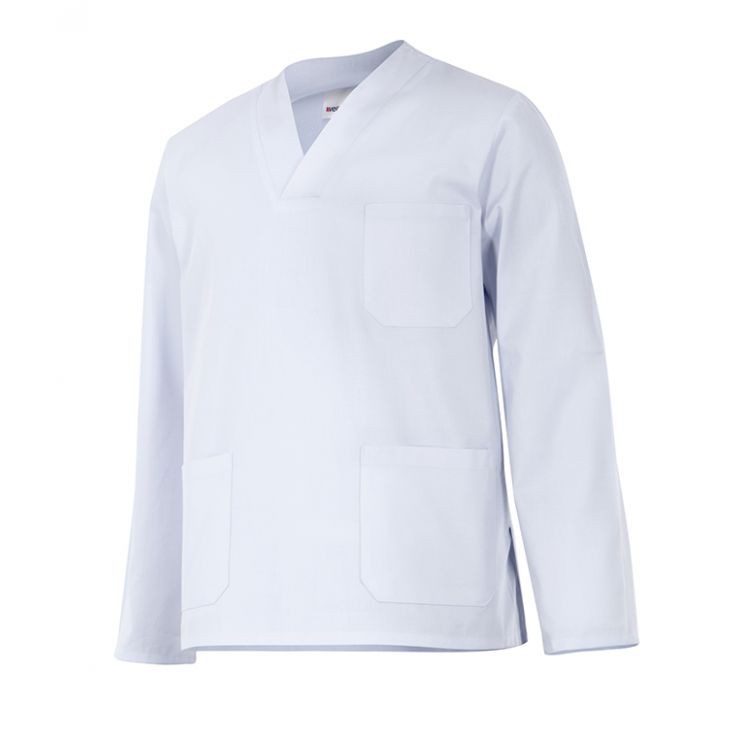 Long-sleeved pajama top with a V-neckline, three flap pockets and side slits. Twill. 65% polyester - 35% cotton Weight 190 gr/m2 Dimension