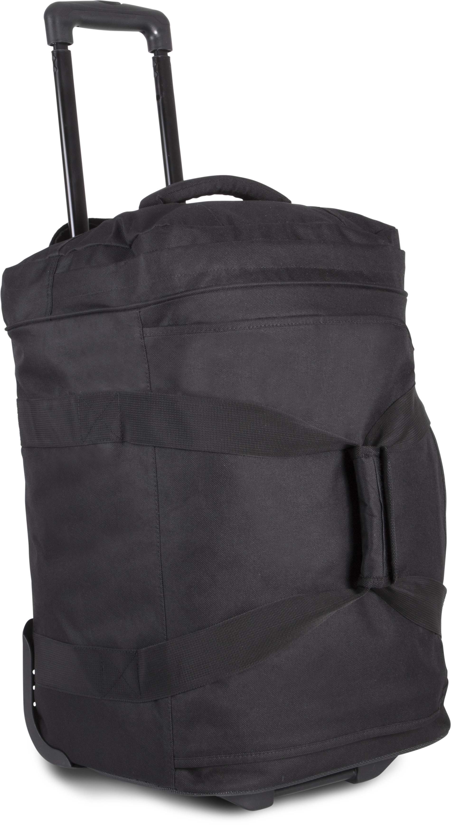 Trolley cabin in 600D polyester with clasp with clasp closure. Side pocket with zip. Base with embossed protective coating. Zipped shoe compartment. It remains stable even when empty. Telescopic handle that can be hidden through its own compartment. Dimension 34 x 50 x 27 cm