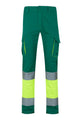 Multi-pocket work trousers made of bielastic fabric with a waterproof, water-repellent finish. Waistband with elastic rubber on the sides for greater comfort and better adaptation to the body. Two thermo-reflective thermoset straps around the leg, under the knees, providing visibility and safety to the user. Two side cargo pockets with velcro closure and flap and two-tone retro-reflective textile tape detail in the center of the flap. Two side hip pockets and two zipped back pockets. Complies with EN 17353:2020 (Type B2).