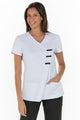 Unisex tunic with short sleeves, closed, with pointed neck, one pocket on the left chest and two front patch pockets. Loose-fitting garment with side slits. Basic model made of twill fabric. Ideal for uniforms for nurses, doctors and other healthcare professionals in hospitals, clinics and medical centers, laboratories, pharmacies, veterinary clinics, cleaning services, food service or retail.