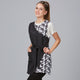 This short-sleeved apron in black features a unique print, adding a touch of style and distinction to your uniform.