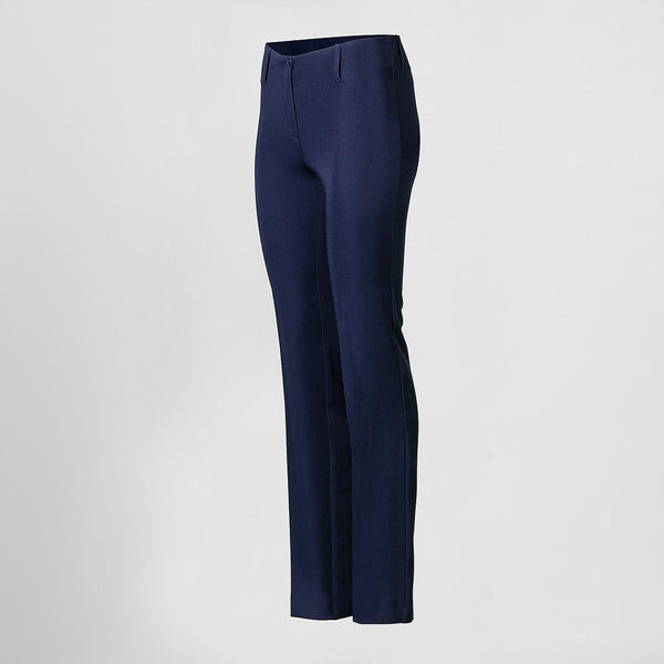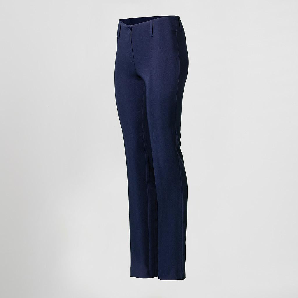 Women's fitted trousers, without darts at the front, low-rise high-waisted. With belt loops at the waist and button and zipper closure at the front. Made from BIELASTIC TECNO fabric (225gr/m²) of 96% Polyester - 4% Elastane, which provides better adaptation to the body and improves shape, with high stain resistance and easy ironing. Ideal as a uniform for waitresses in bars, restaurants and snack bars, music bands, reception, transport, office or retail.