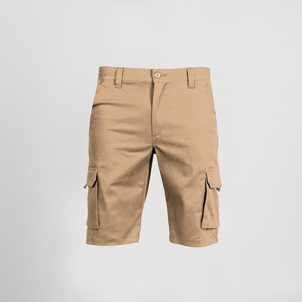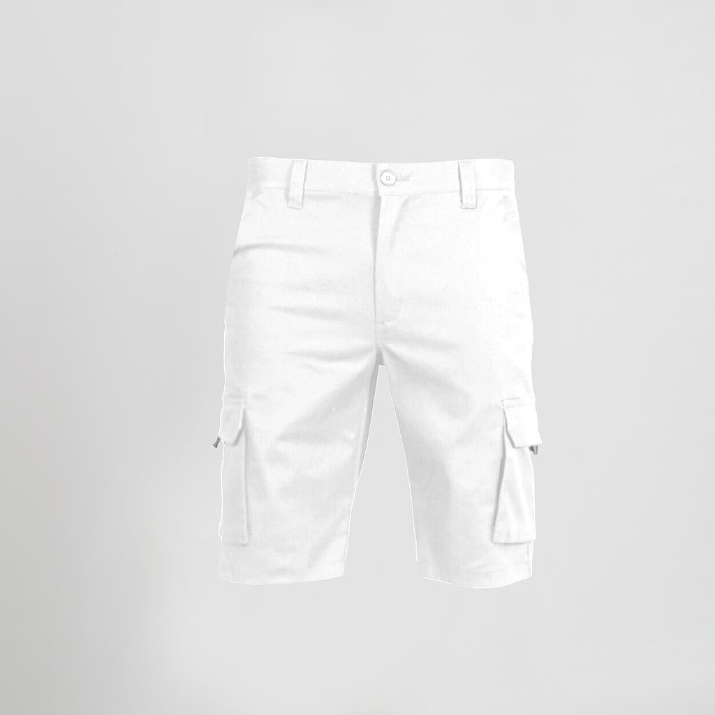 Multi-pocket Transporter Bermuda Shorts, with elasticated back waistband, belt loops, two French hip pockets and four patch pockets with flap and Velcro, two on the back and two on the leg. Made from 65% Polyester - 33% Cotton - 2% Elastane ELASTIC TWILL. A highly durable stretch fabric that provides comfort and freedom of movement, combining moisture management with a stain-resistant treatment. This material choice ensures a comfortable garment that withstands the demands of the hospitality industry. The unisex design of these shorts allows them to be worn by both men and women. The elastic at the sides of the waistband ensures a comfortable fit and allows greater freedom of movement. A variety of functional pockets facilitates the carrying of essential tools. Two pockets with wallets and Velcro on the back, two French-cut pockets on the sides and two pockets with wallets, Velcro and reinforcement on the lower and back of the right leg offer ample storage space.