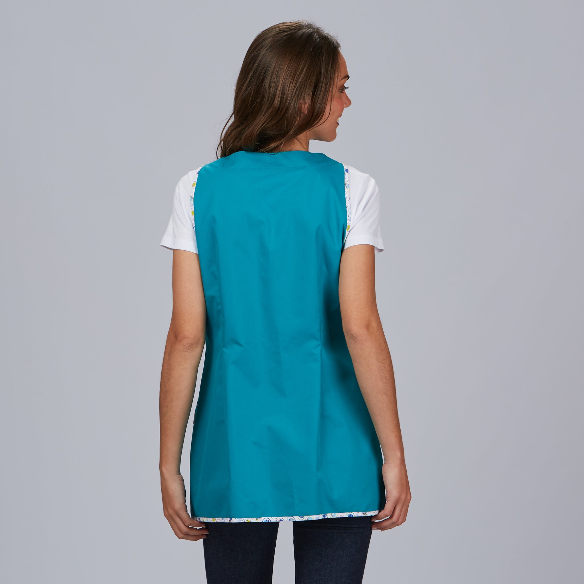 The HAPPY Educator Blouse is the ideal choice for professional women who prioritize comfort, originality, and sustainability in their daily work. With a semi-fitted cut, this piece stands out for its crossover design with contrasting exposed buttons, giving it a modern and distinctive touch. The aqua green tone provides freshness and a contemporary look, perfectly aligning with professional environments in early childhood education, commerce, healthcare, and customer service.