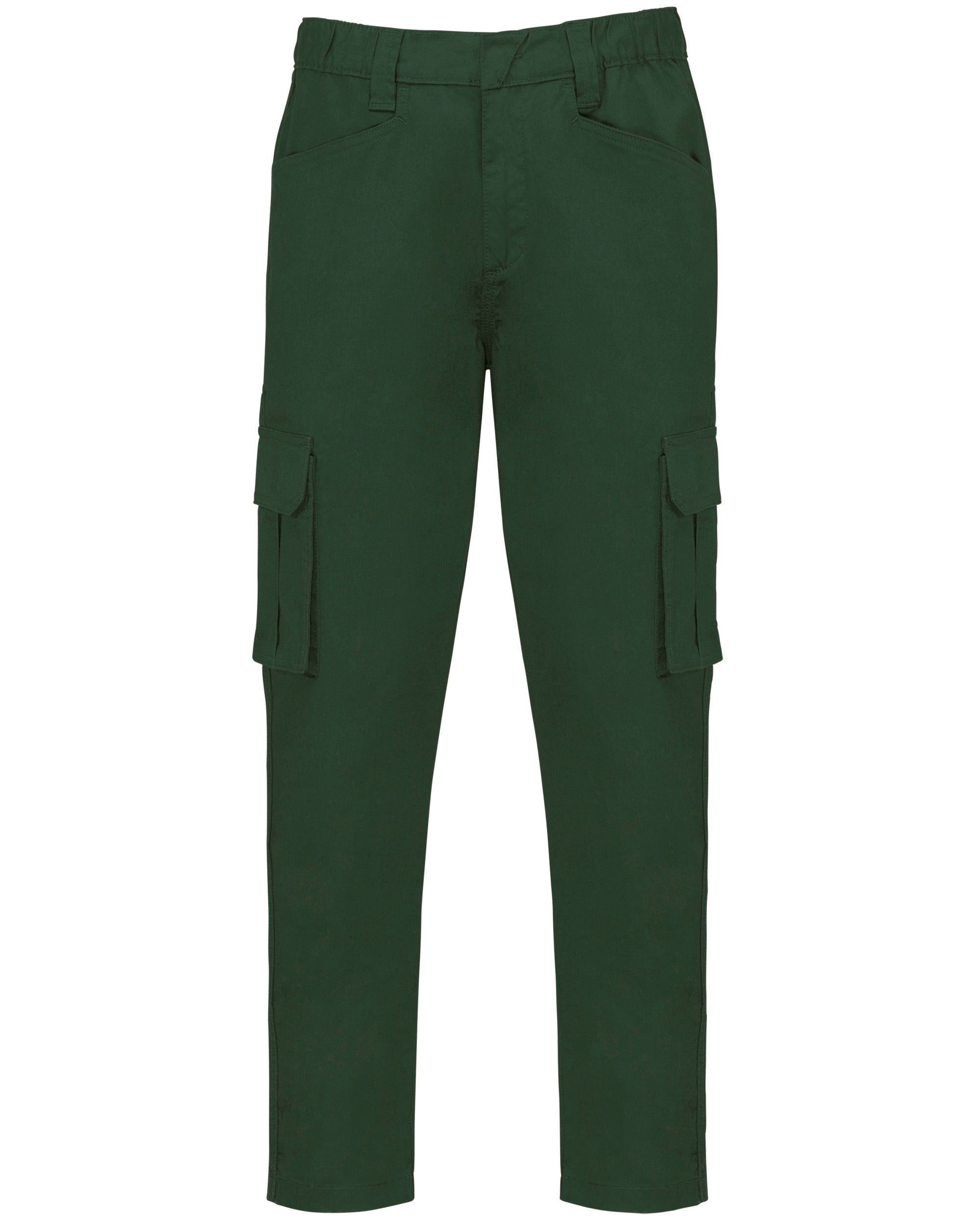 Multiple pockets for additional storage and strap for hanging tools. Lightweight, tear-resistant twill fabric. Elastic belt for added comfort.
