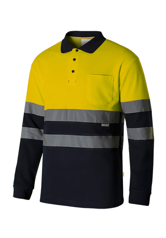 TWO-COLOR COTTON POLO LONG SLEEVE HIGH VISIBILITY