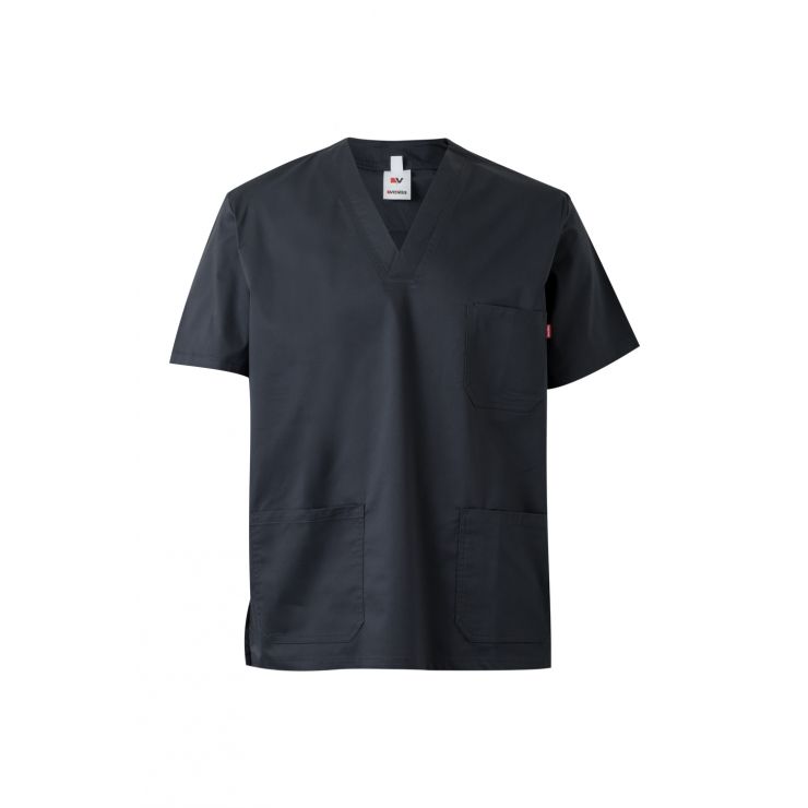 V-neck Side openings Scapular on the back Double stitching STRETCH 62% POLYESTER - 34% COTTON - 4% ELASTANE 185 GSM Four...