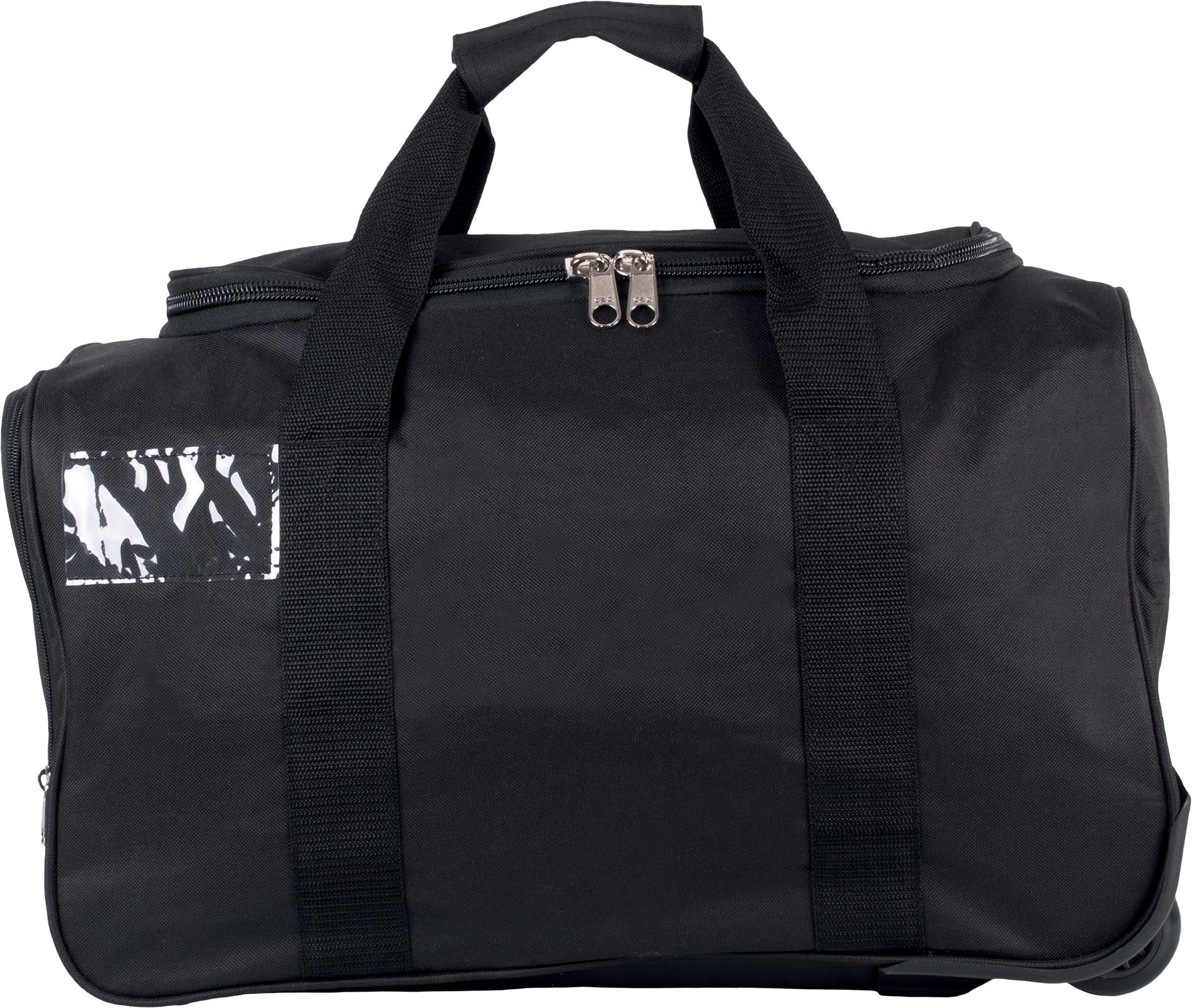 Sports bag with trolley system. medium size (55 cm). in 600D polyester. 1 zipped side pocket to store a pair of shoes. large opening with a large clasp at the bottom. tag holder for identification. reinforced handles with 5 cm straps around the bag. Grammage Dimension 50 x 30 x 30 cm