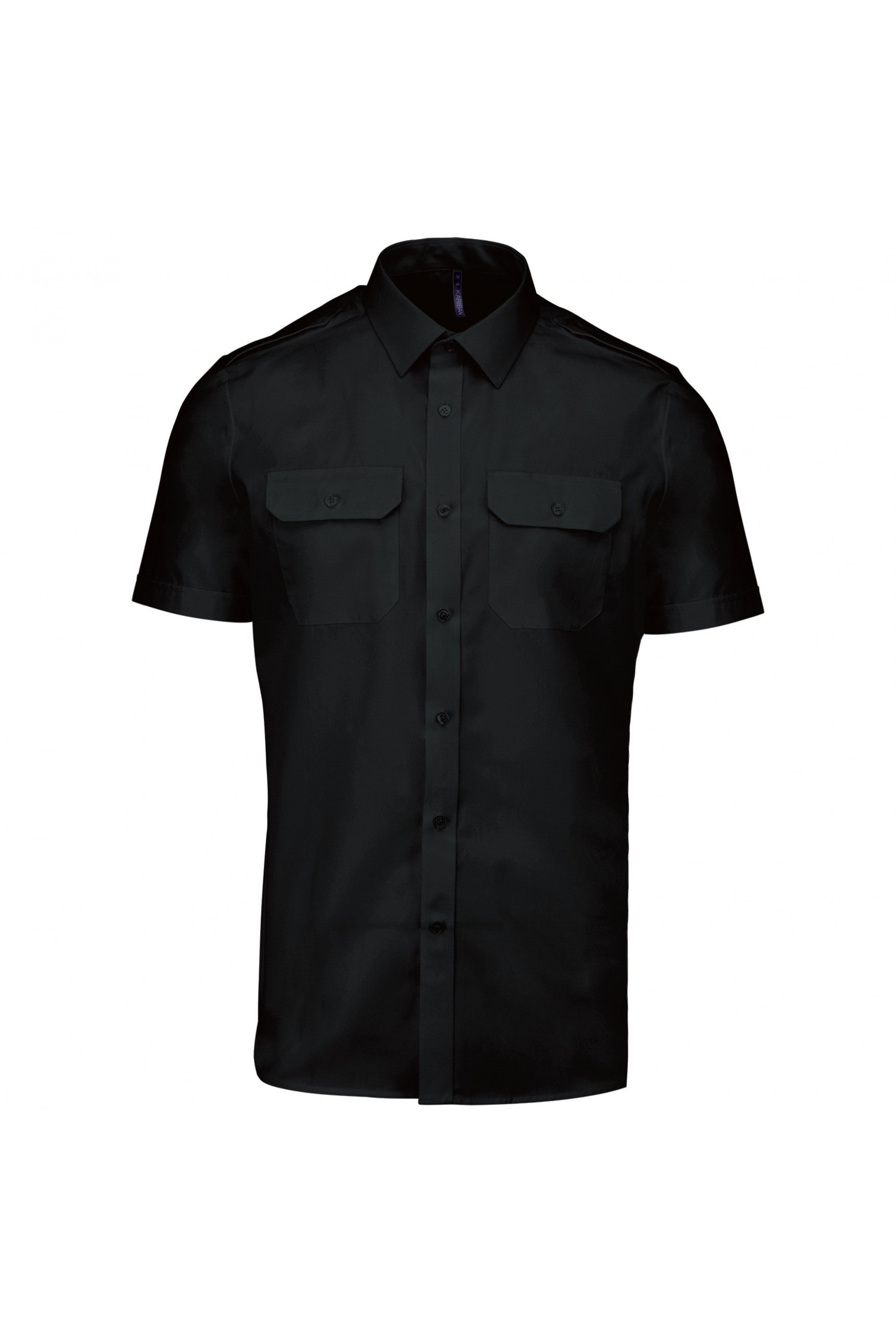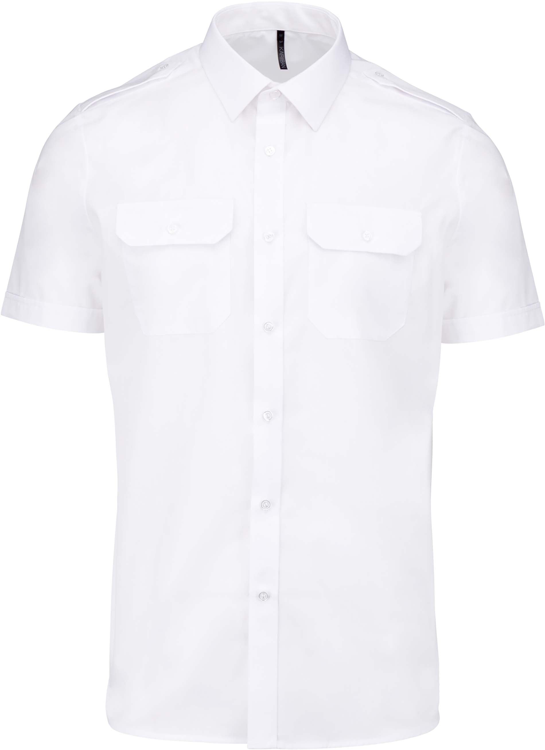 65% polyester / 35% cotton poplin. Easy care treatment. Color-matched buttons. 2 front pockets with flaps, one with a pen holder on the left side. Pleat at the back. Buttoned flaps on the shoulders for attaching trim (trim not included). Folded cuffs. Weight 115 g/m². Dimensions.