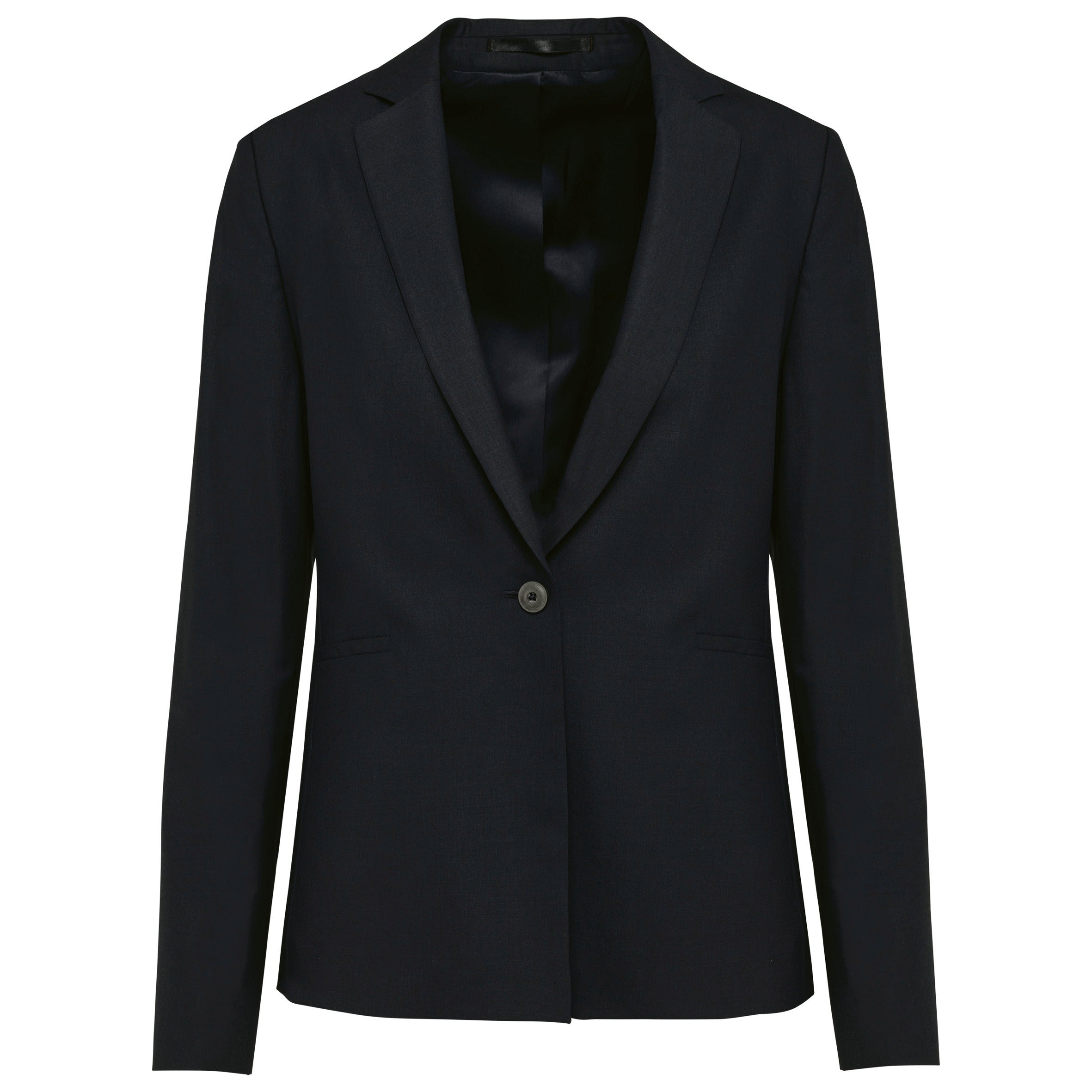 Comfortable, tailored fit. Quality material for comfort and warmth. Part of a suit, wear with PK750 suit pants or PK5001 skirt. Blazer fastens with 1 button. 2 front pockets. One interior pocket on the left chest. Sleeves with 3 buttons. 1 opening / slit in the back. Without a brand label, it contains a small label with only a size indication for easy customization.