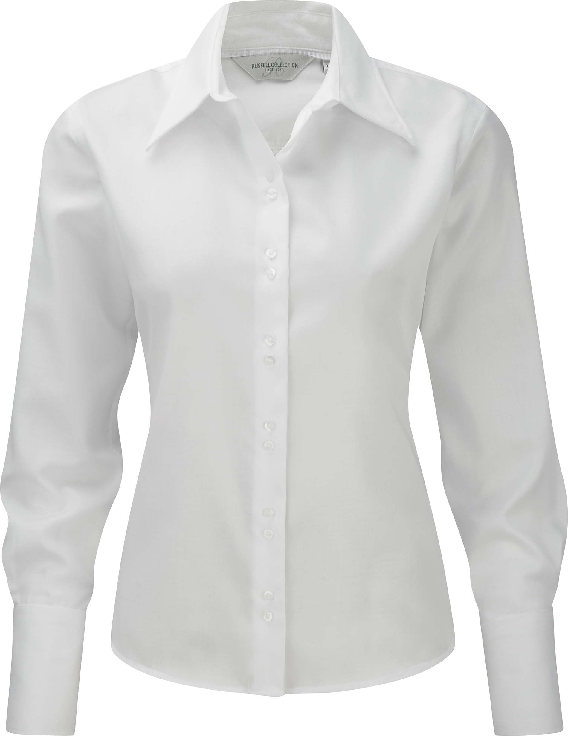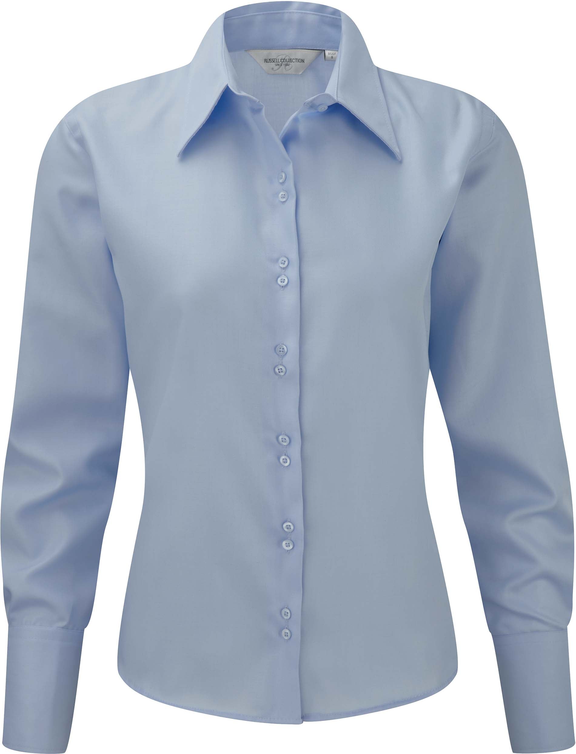 100% cotton micro twill. Elegant and comfortable long collar. Fashionable two-button closure. Fitted cut, highlighting the silhouette. Long, flared cuffs with straight hems fastened with a single button. Possibility of adding more buttons to the cuffs. Rounded hem. Weight 120 g/m². Dimensions