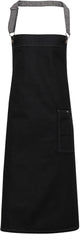 65% polyester / 35% cotton twill. Two-tone apron. 2 ribbons 90 cm long in the same material. Length: 86 cm. Width: 72 cm. Adjustable neck strap with buckle. 2 side pockets on the front with an oblique opening. Print surface the size of an A4 page. Industrial washing at 85°C. Domestic washing... Weight 195 Dimension