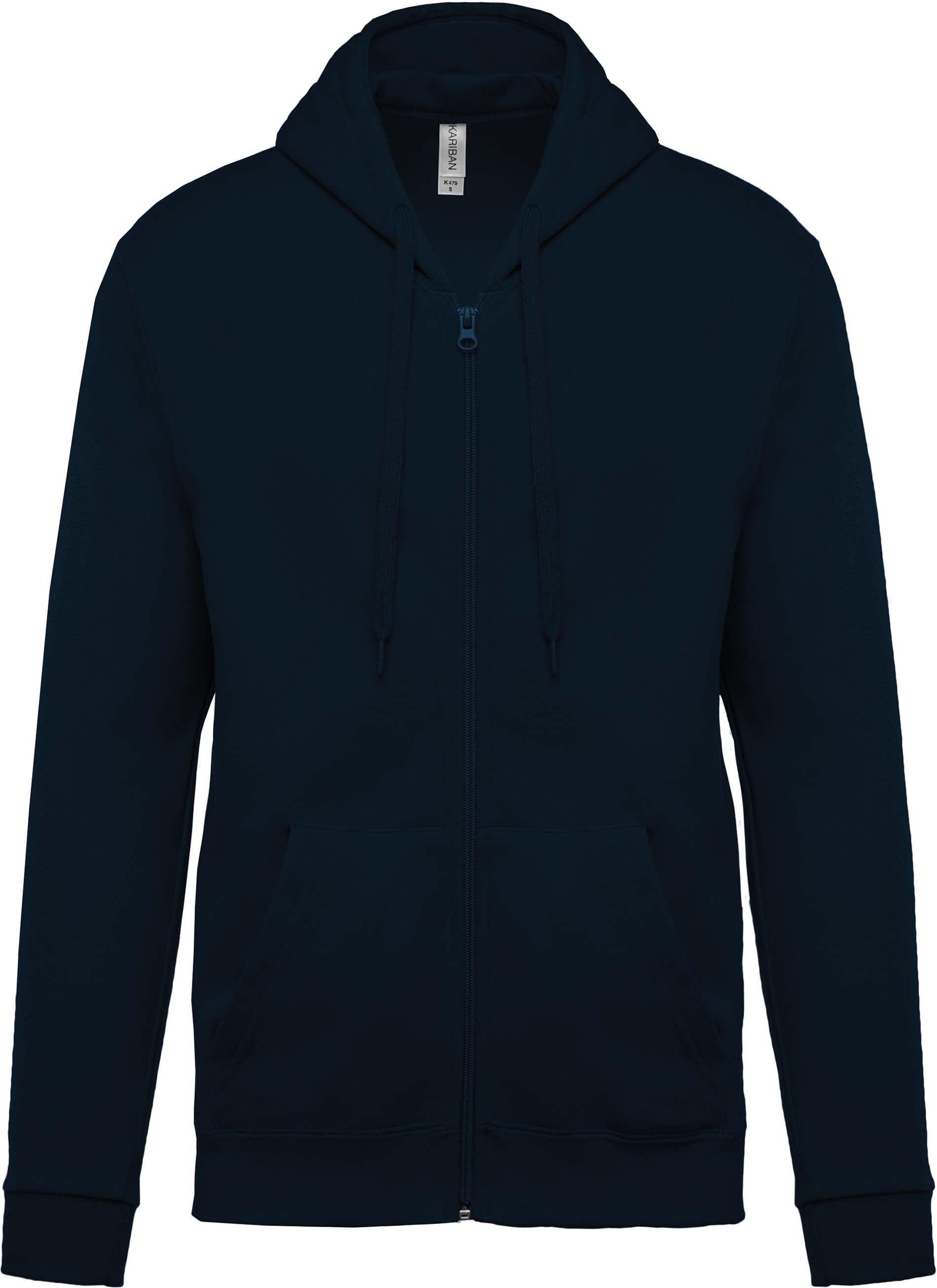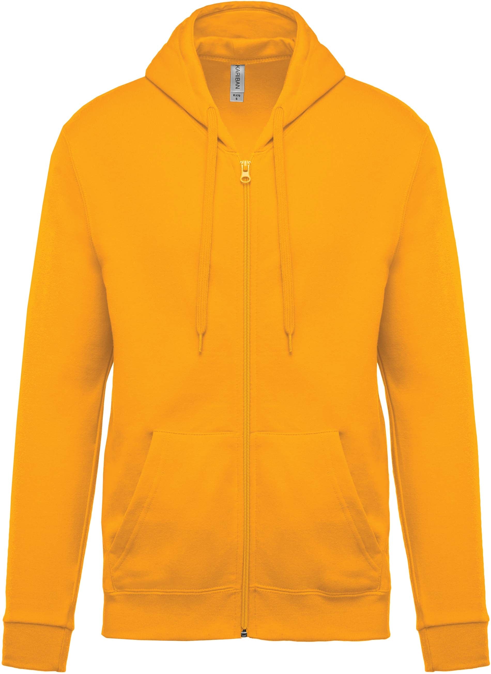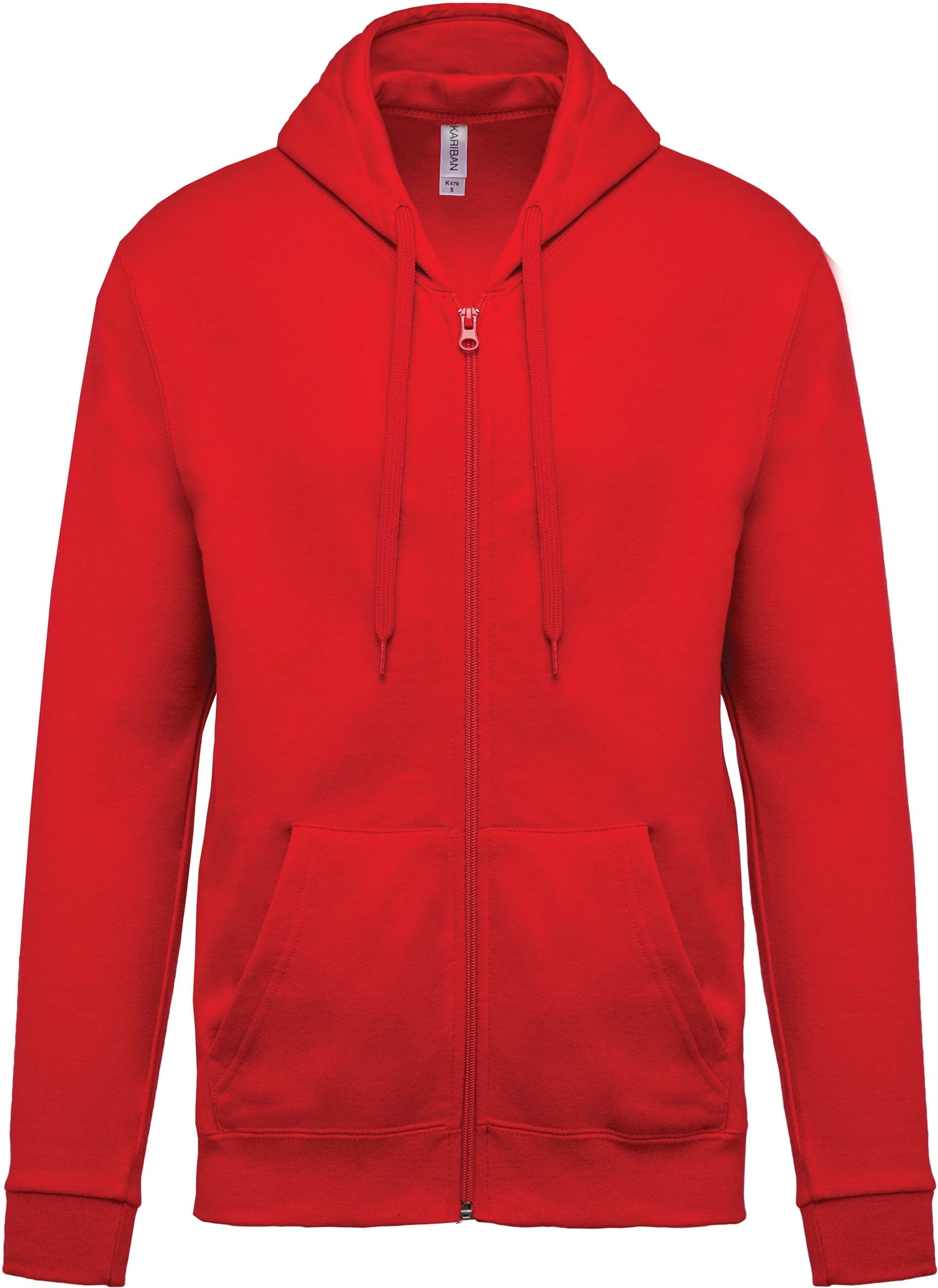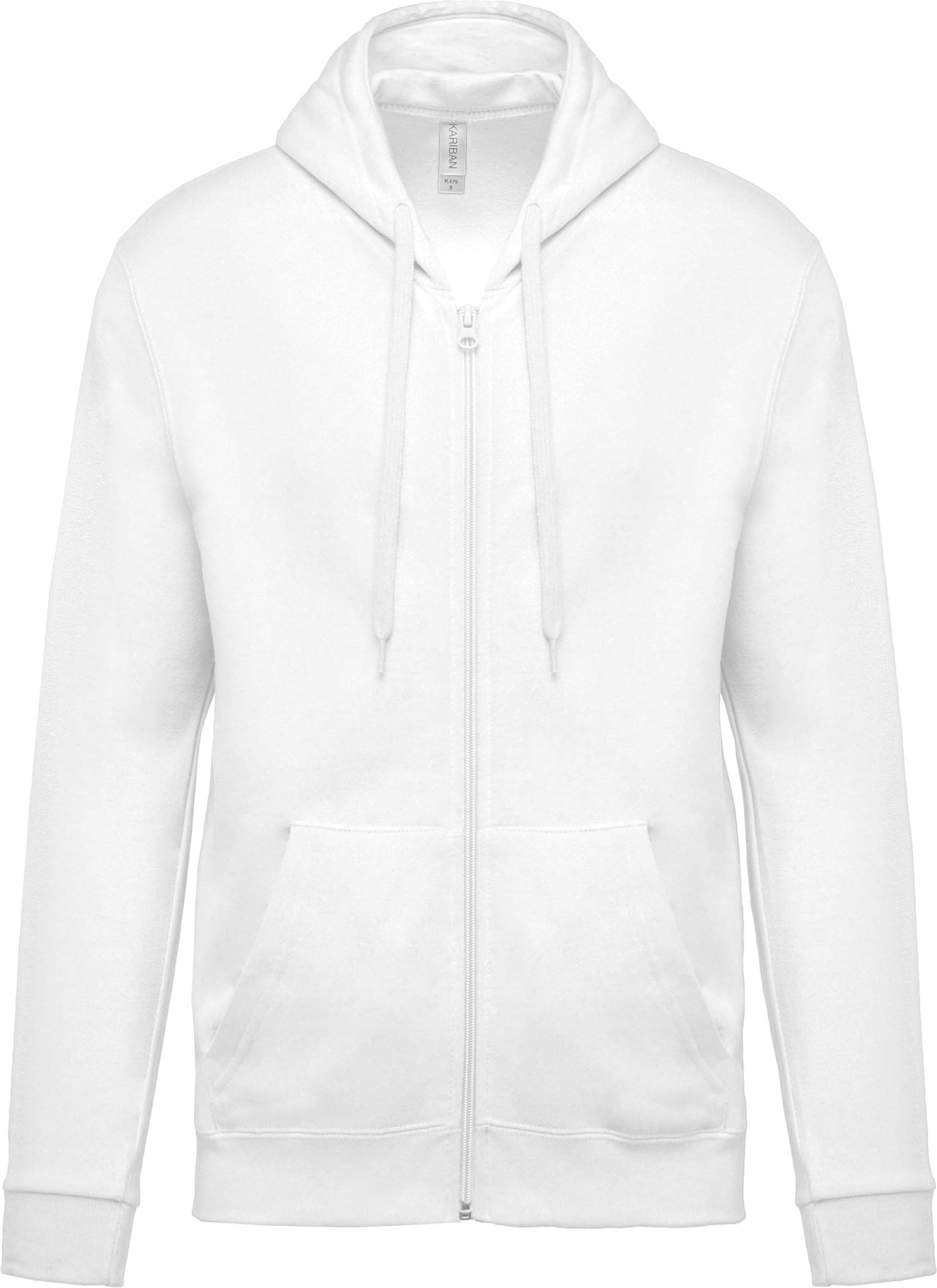 80% cotton / 20% polyester. Carded interior. Straight sleeves. Tubular shape. Nylon closure. Hood lined with color-adjustable drawstring. Kangaroo pockets. Rib knit sleeve and waistband finish. Weight 280 Dimension