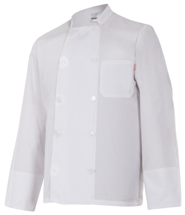 Central double-breasted button fastening. Strap collar. Tailored sleeve, with opening at the cuffs. No side seam. Additional button.. One pocket: 1 patch pocket on the chest. Flat. 65% polyester - 35% cotton Weight 175 gr/m2 Dimension