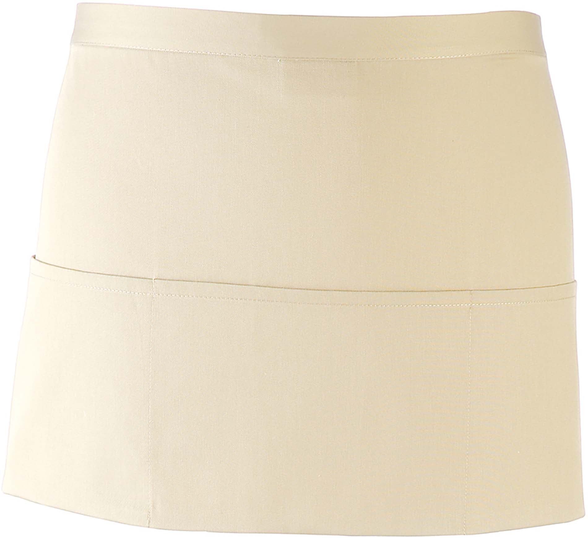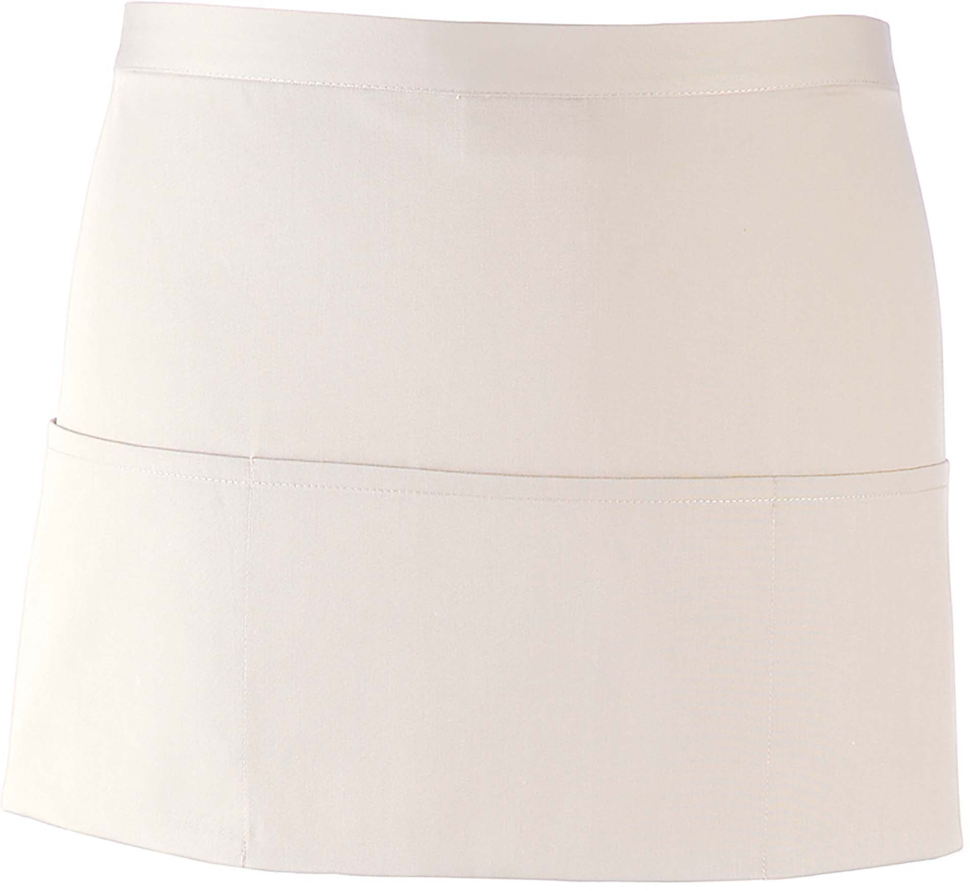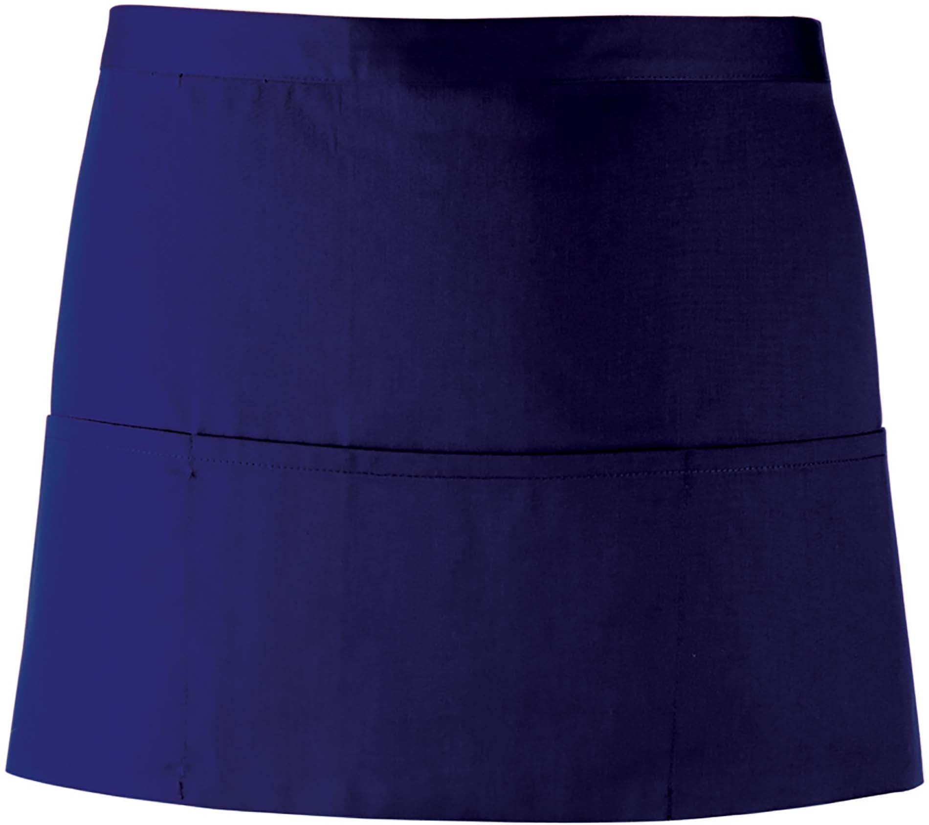 65% polyester / 35% cotton twill. Short apron with 3 open pockets. Cords in the same fabric. Length: 90 cm.