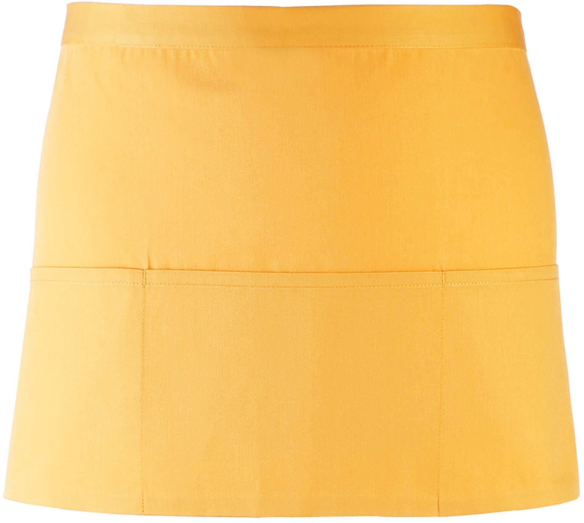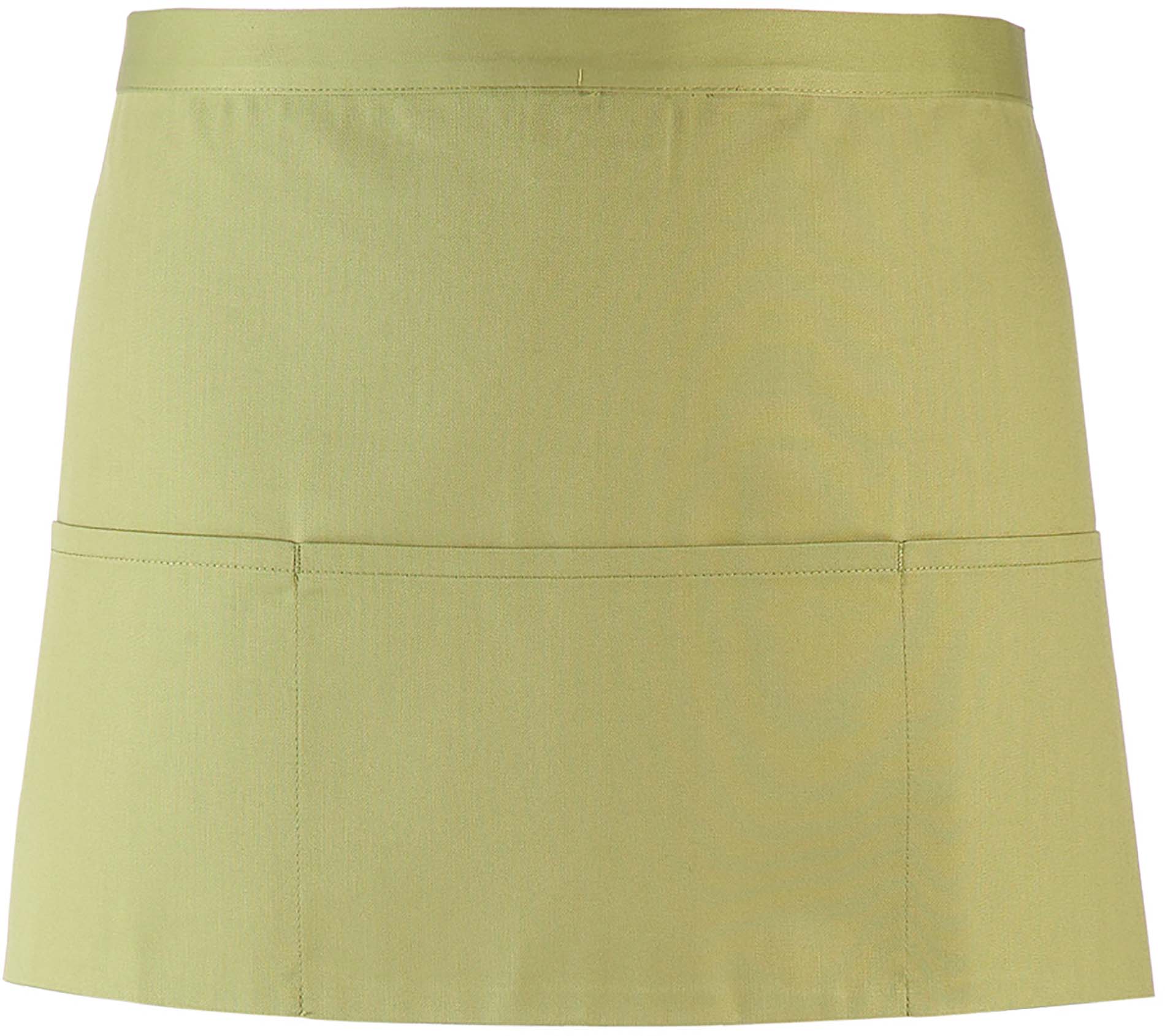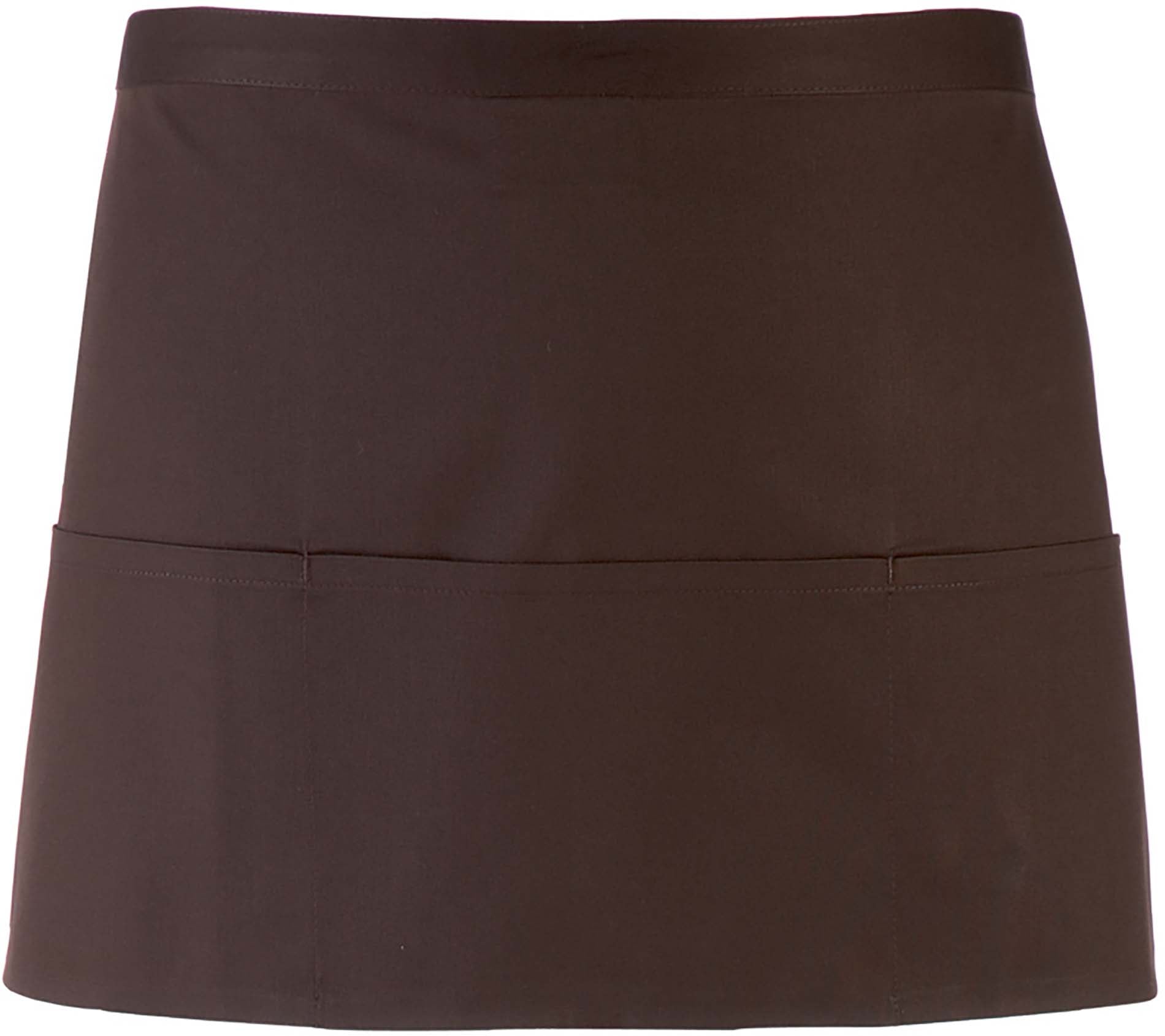 65% polyester / 35% cotton twill. Short apron with 3 open pockets. Cords in the same fabric. Length: 90 cm.